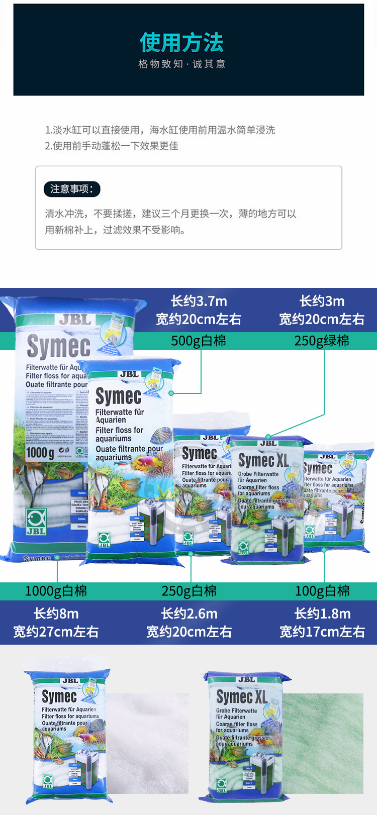 독일 JBL 손으로 찢을 수 있는 캐시미어 면 흰색 공기 수조 필터 면 수조 분뇨 필터 생화학 필터 재료스토어 가기