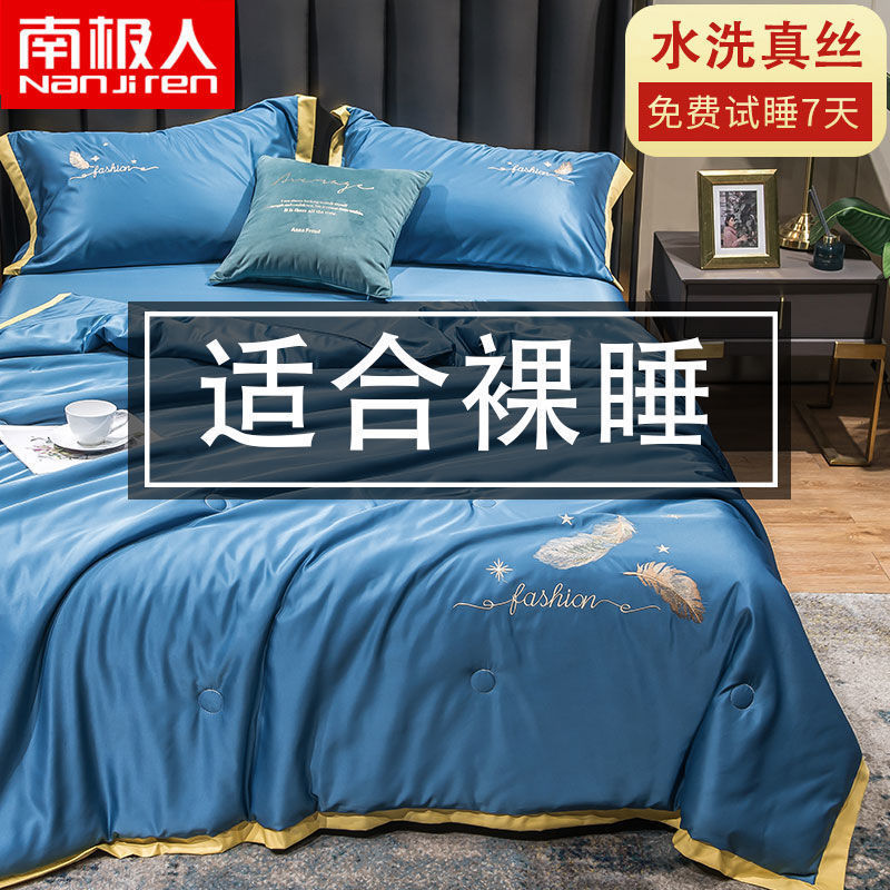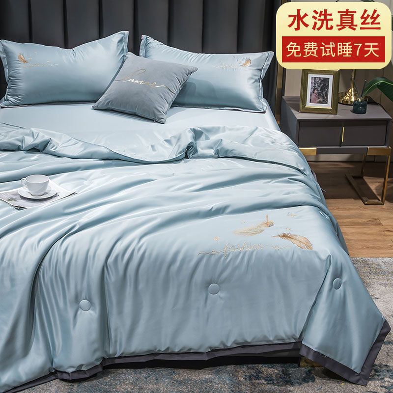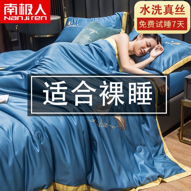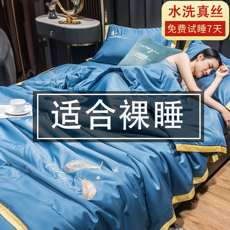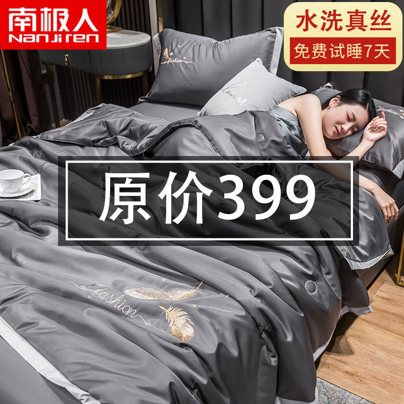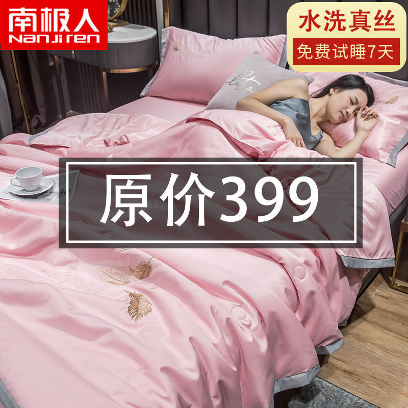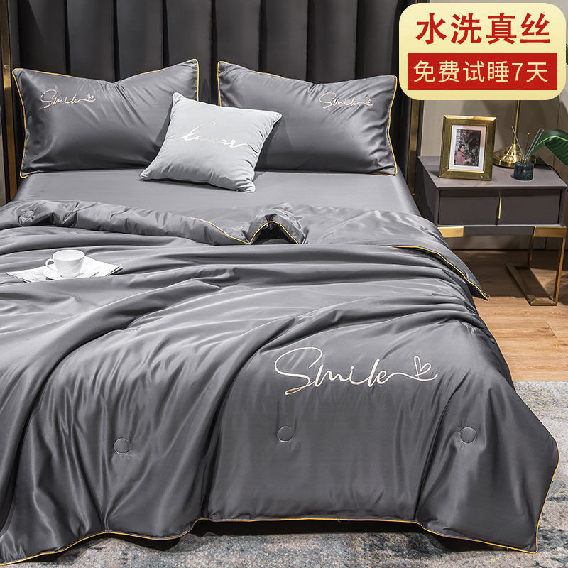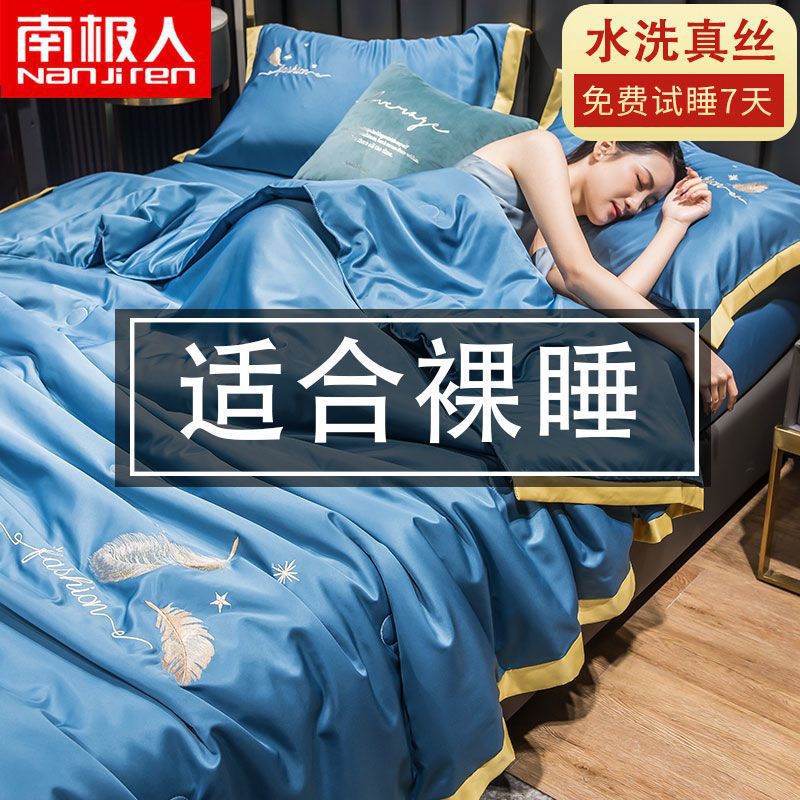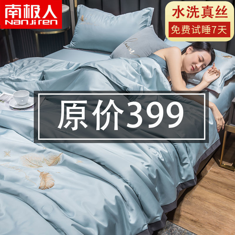 Nanjiren 아이스 실크 에어컨 이불 여름 냉각 이불 4피스 싱글 및 더블 이불 코어 여름 이불 세탁 가능한 실크 여름 이불스토어 가기