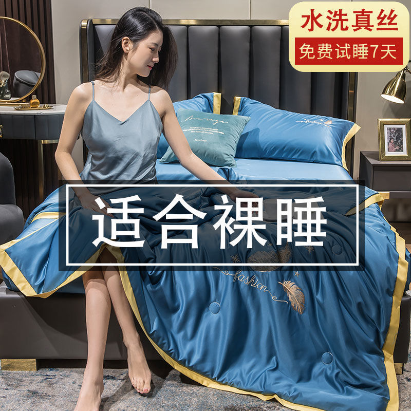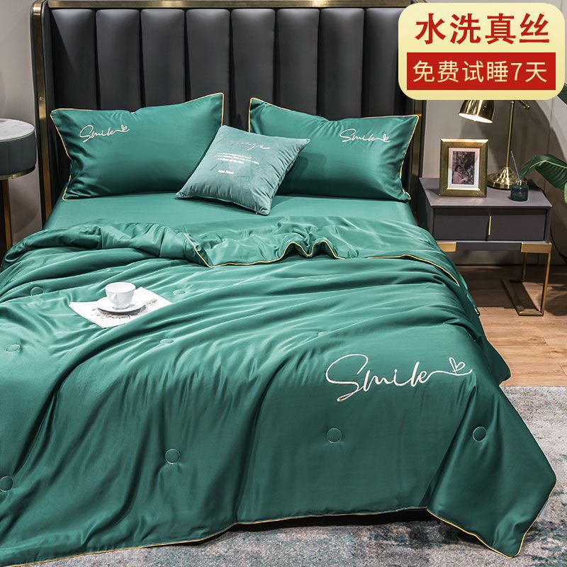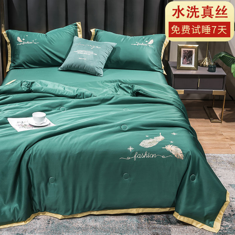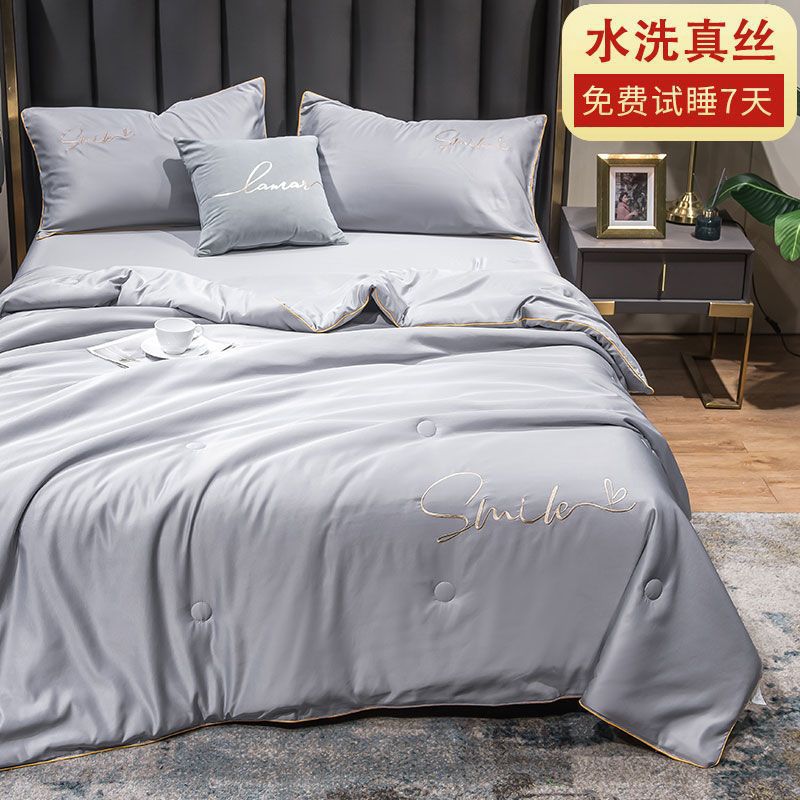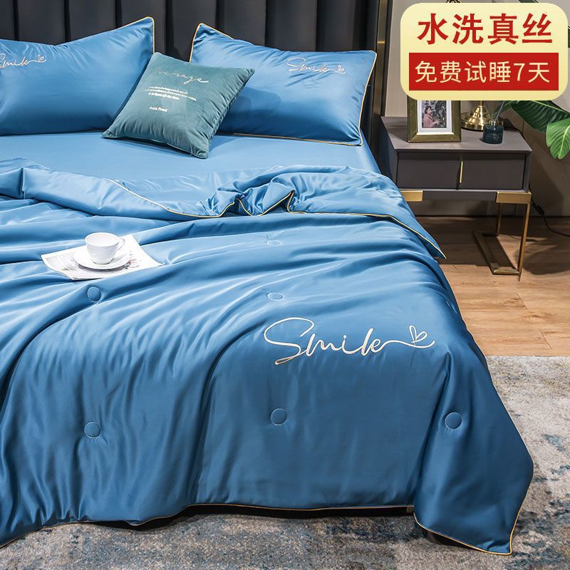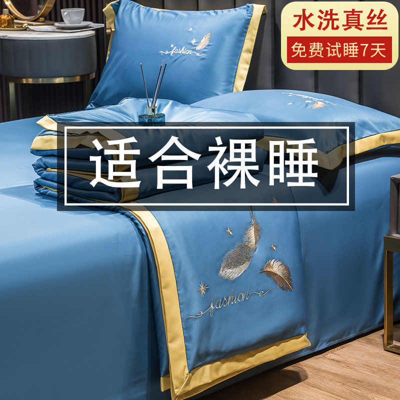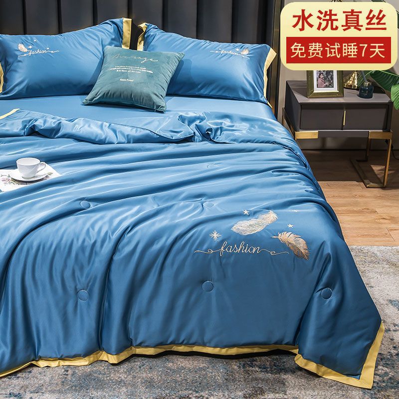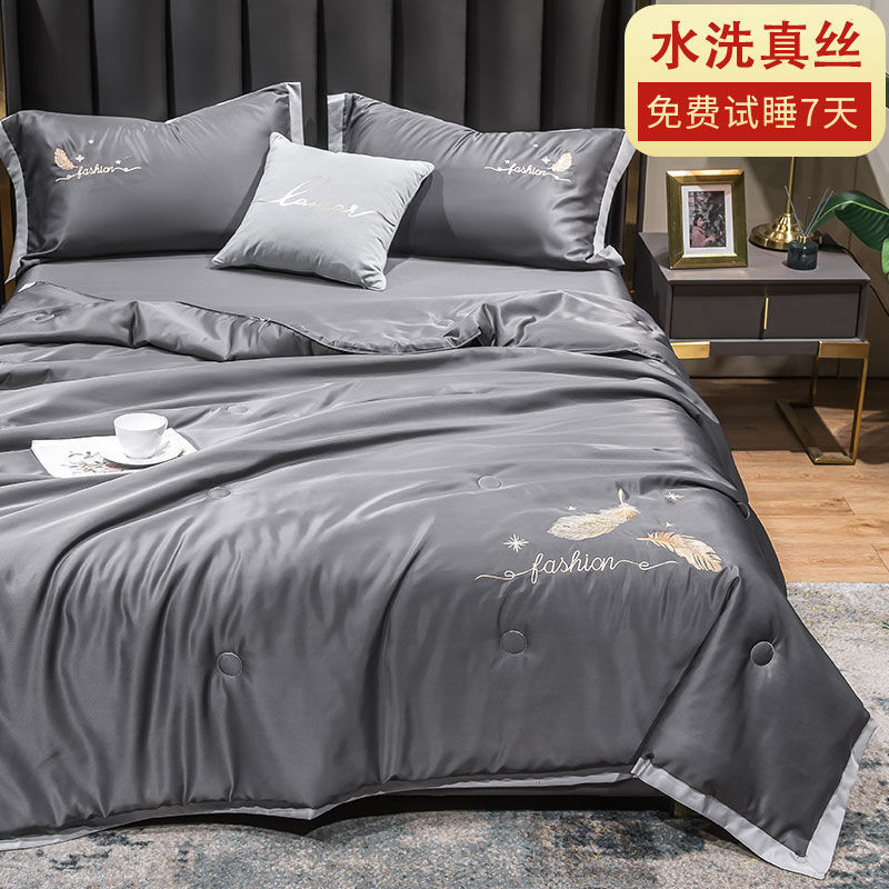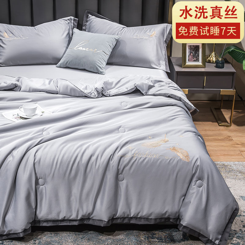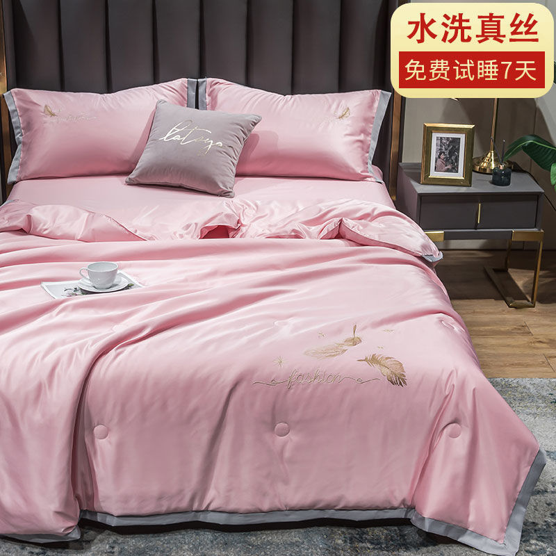 Nanjiren 아이스 실크 에어컨 이불 여름 냉각 이불 4피스 싱글 및 더블 이불 코어 여름 이불 세탁 가능한 실크 여름 이불스토어 가기