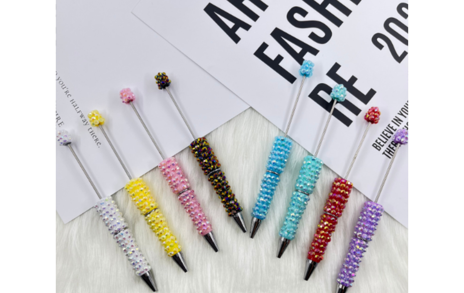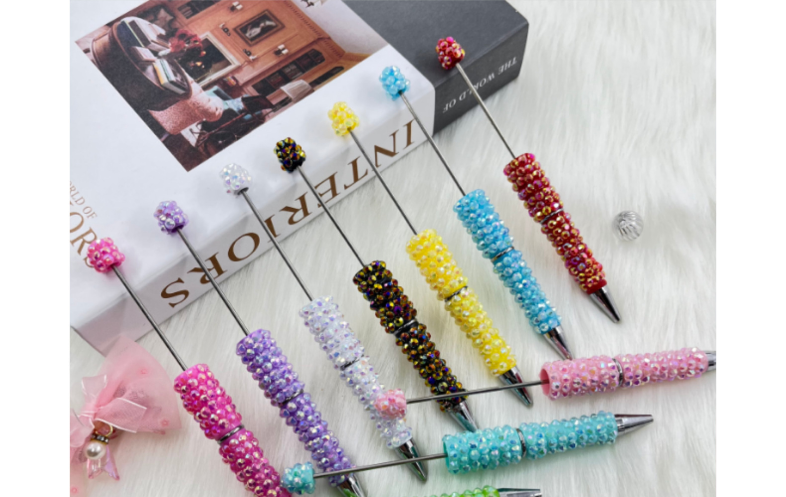 진주와 다이아몬드로 장식된 비즈펜 수제 DIY 다색 볼펜 ins 학생용 문구류 재고 도매 회전식스토어 가기