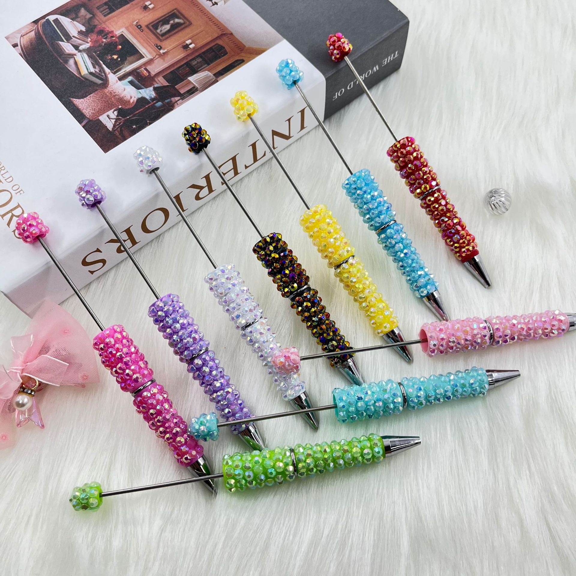 진주와 다이아몬드로 장식된 비즈펜 수제 DIY 다색 볼펜 ins 학생용 문구류 재고 도매 회전식