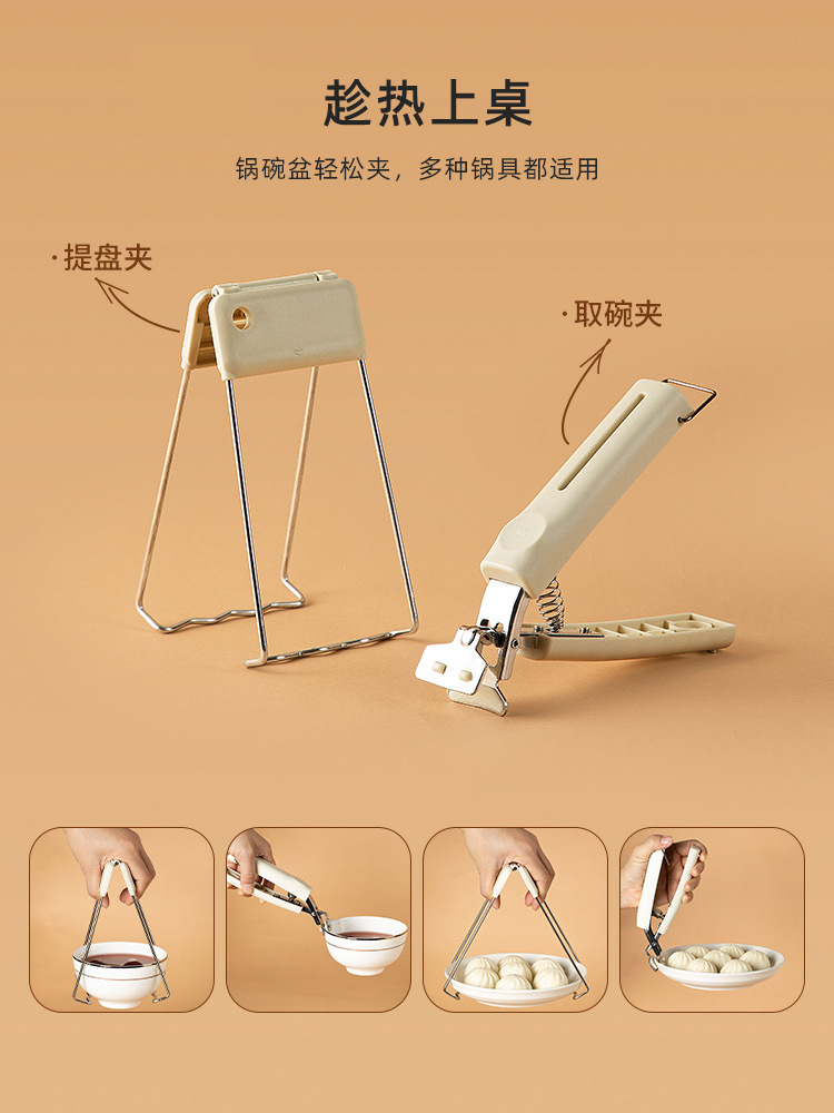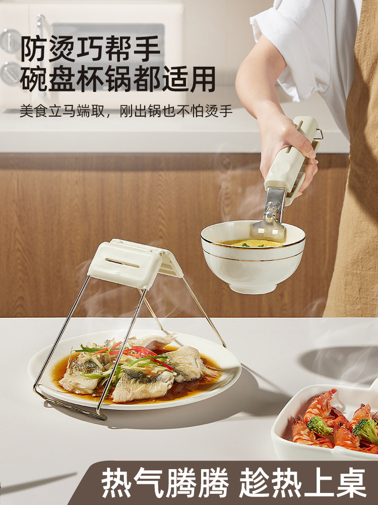 ♔ 화상방지 그릇집게, 미끄럼방지 집게, 주방접시집게, 찜그릇, 스테인리스 단열접시집게, 그릇집게