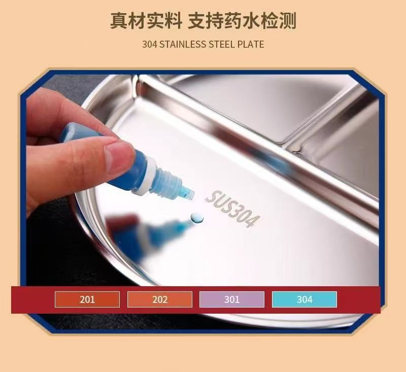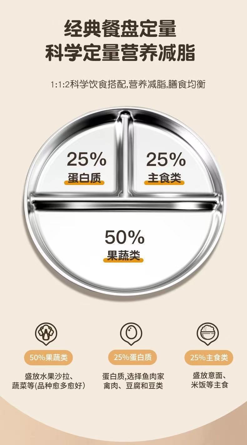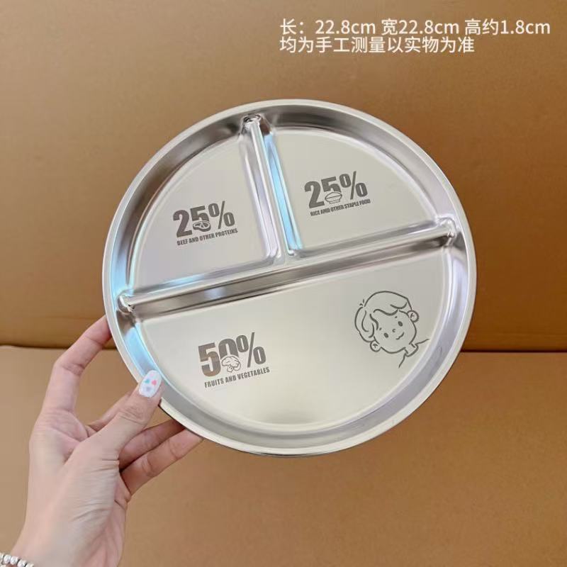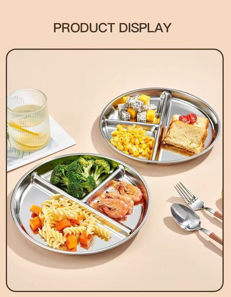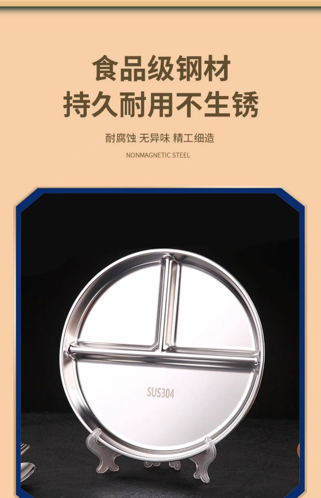 304 스테인레스 스틸 디너 플레이트, 학생용 식품 등급 점심 3칸 원형 플레이트, 지방 감량 디너 플레이트, 가정용 정량스토어 가기
