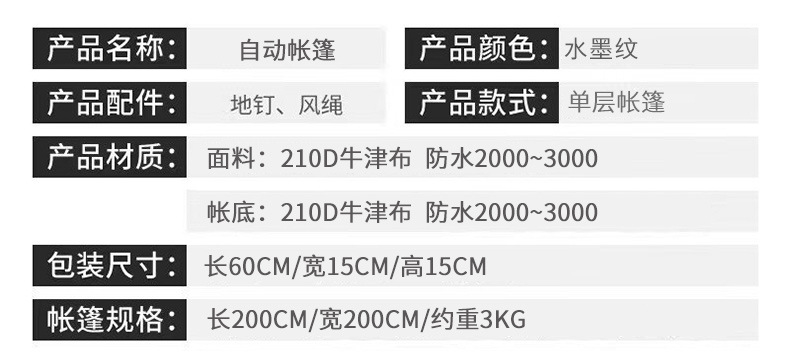 피크닉 나들이를 위한 자동 단층 빠른 개방형 텐트, 야외 캠핑, 바람과 비, 낚시, 간편한 소형 텐트