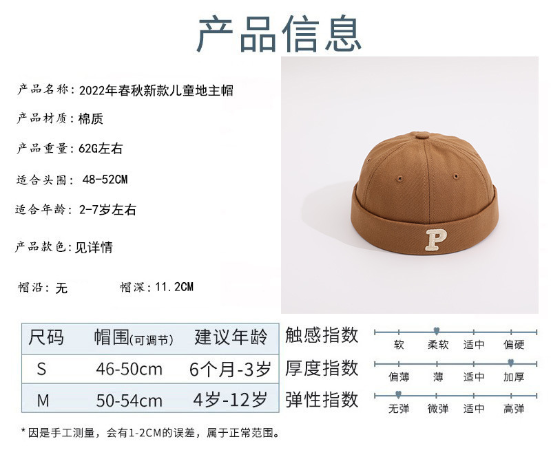 봄과 가을 새로운 중국 스타일 어린이 농가 모자 소년과 소녀 패션 모자 P 문자 호박 모자 크로스 보더스토어 가기