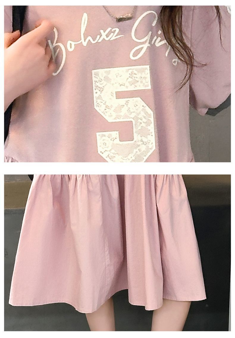 여자 드레스 여름 드레스 2025 새로운 스타일 여자 스플 라이스 프린트 드레스 큰 어린이를위한 한국 스타일 캐주얼 공주 드레스스토어 가기