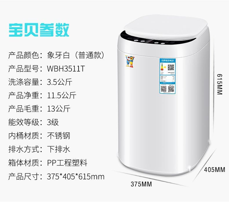 Xiaoya 브랜드 3.5kg 소형 유아 및 아기 가정 기숙사 완전 자동 미니 세탁기 세탁 및 건조 기능이 통합되어 있습니다.스토어 가기