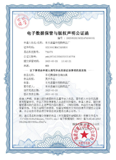 产品特点:这款产品选用羊毛作为原料,质地柔软属于丰容类玩具。