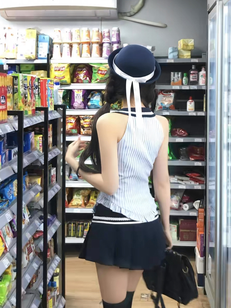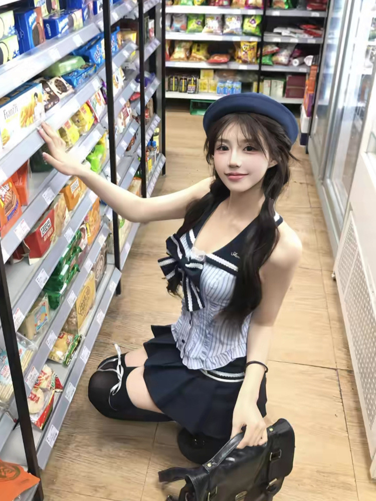 도쿄 교복 여름 신작 스위트 컬리지 스타일 보우 웨이스트 민소매 셔츠 기질 스커트 슈트스토어 가기