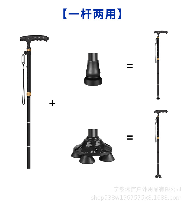 노인을 위한 조명이 있는 알루미늄 합금 지팡이, 자석, 단일 회전, 4개의 다리, 이중 목적 지팡이, 5개의 섹션, 접이식 및 휴대 가능스토어 가기