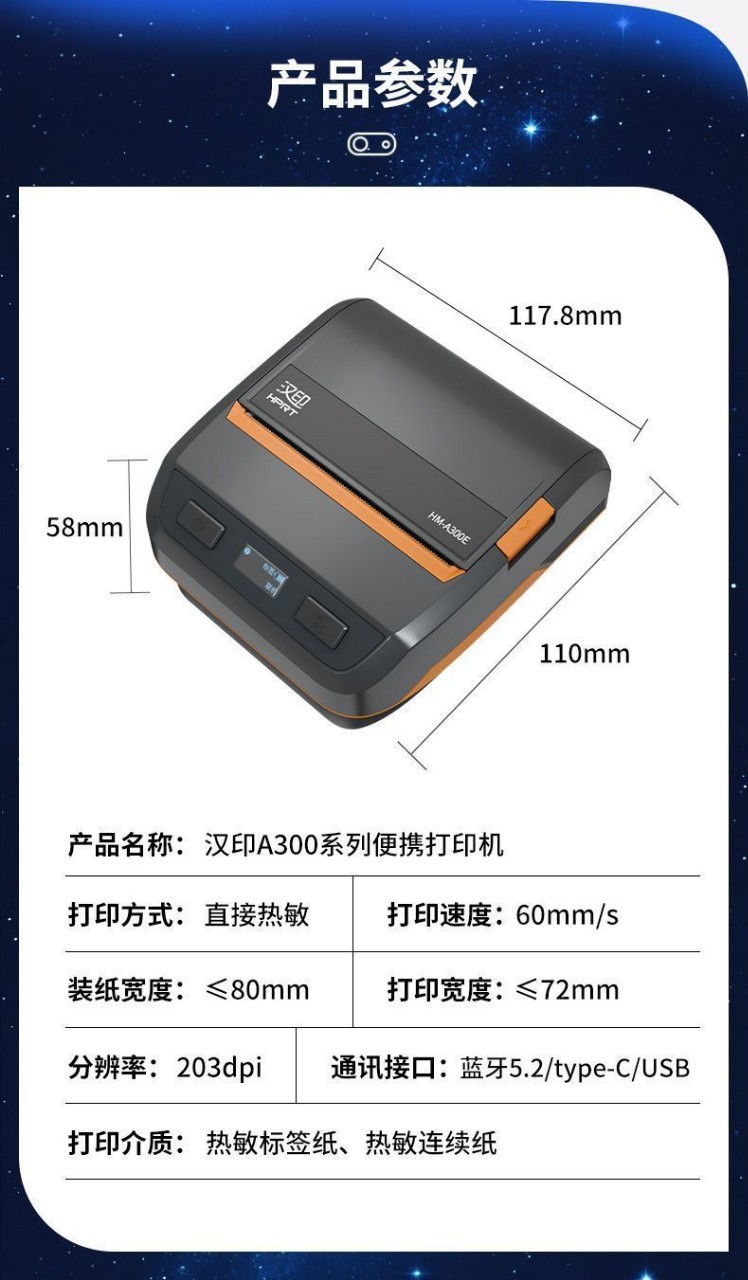 Hanyin A300E 익스프레스 프린터 휴대용 스테이션 픽업 코드 배송 주문 열 블루투스 프린터 새로운스토어 가기