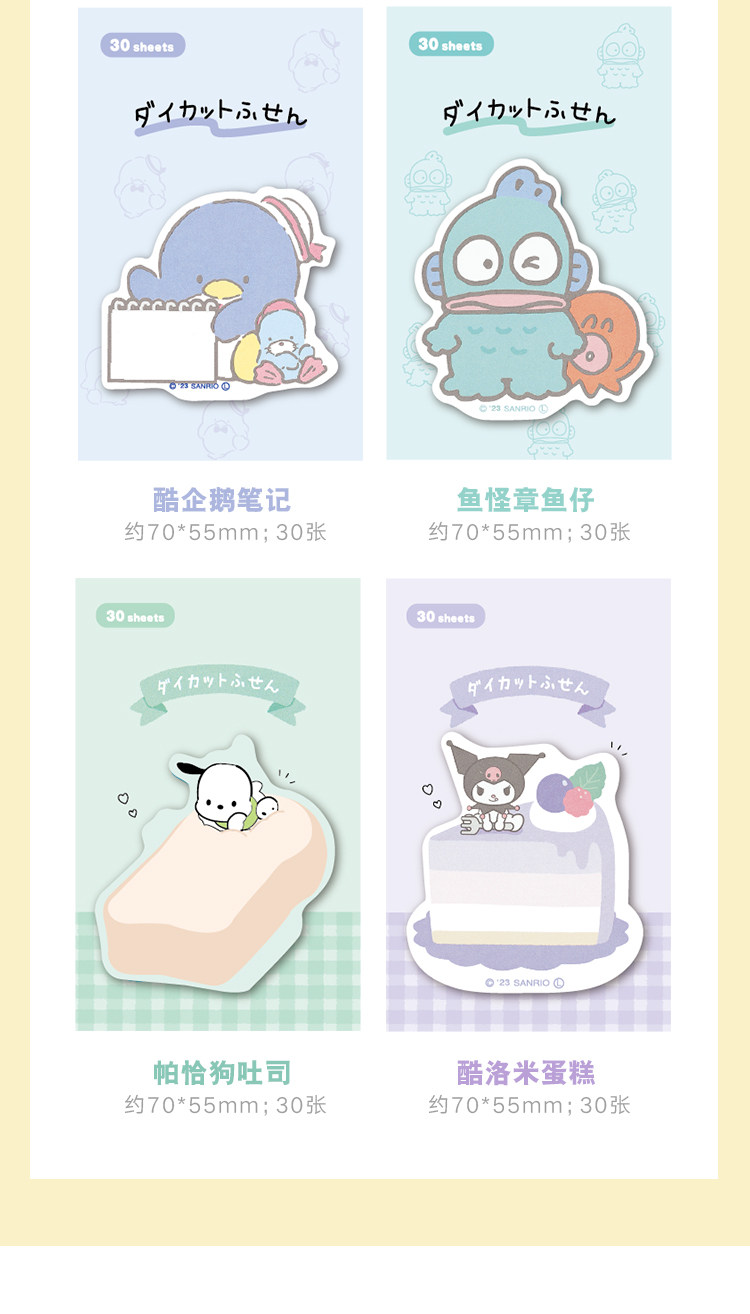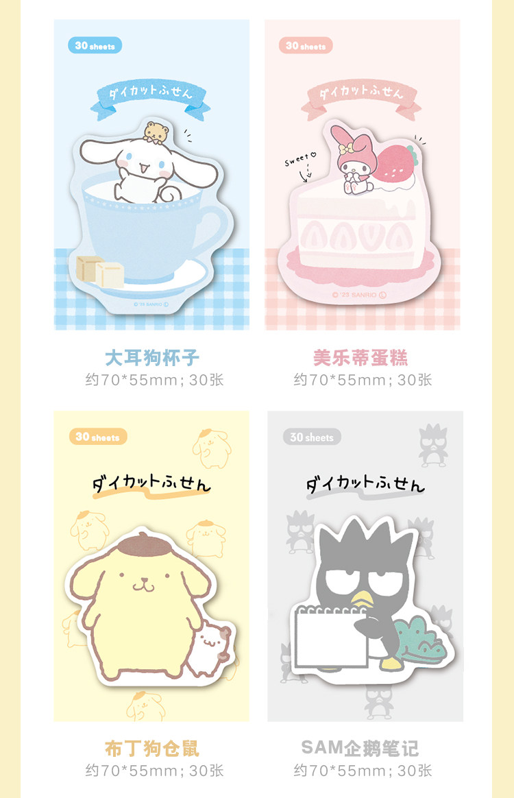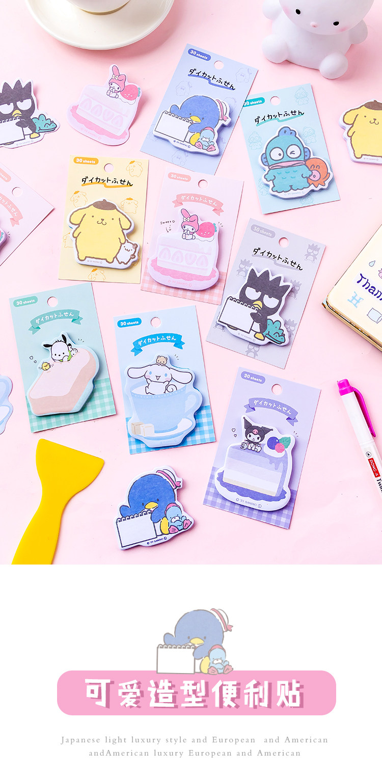 일본 귀여운 만화 특별한 모양의 포스트잇 메모 파차 개 쿠로미 소녀 하트 N회 메시지 스티커 8종스토어 가기