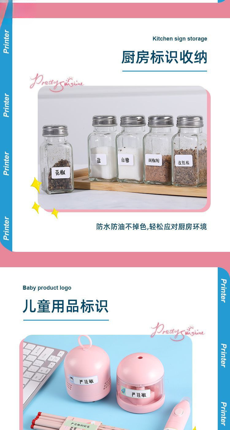 가정용 휴대용 휴대용 라벨 프린터 소형 미니 블루투스 이름 스티커 열 라벨 프린터 방수