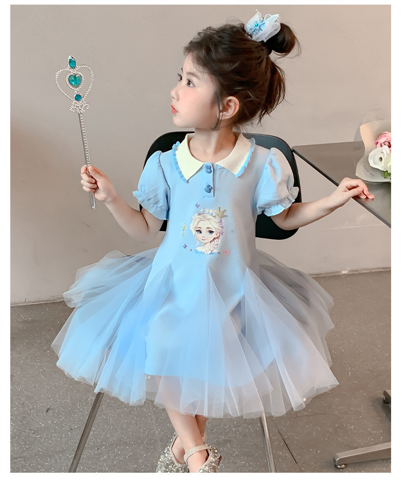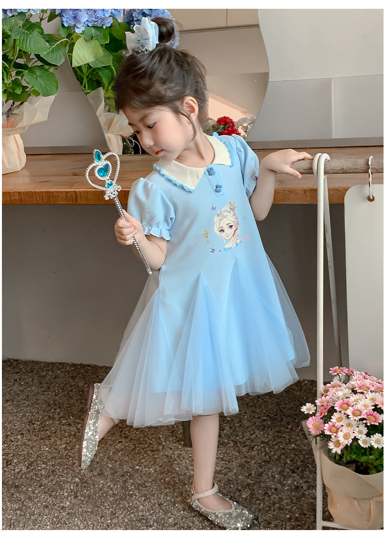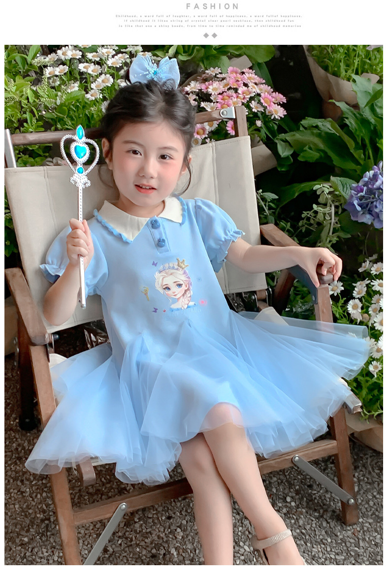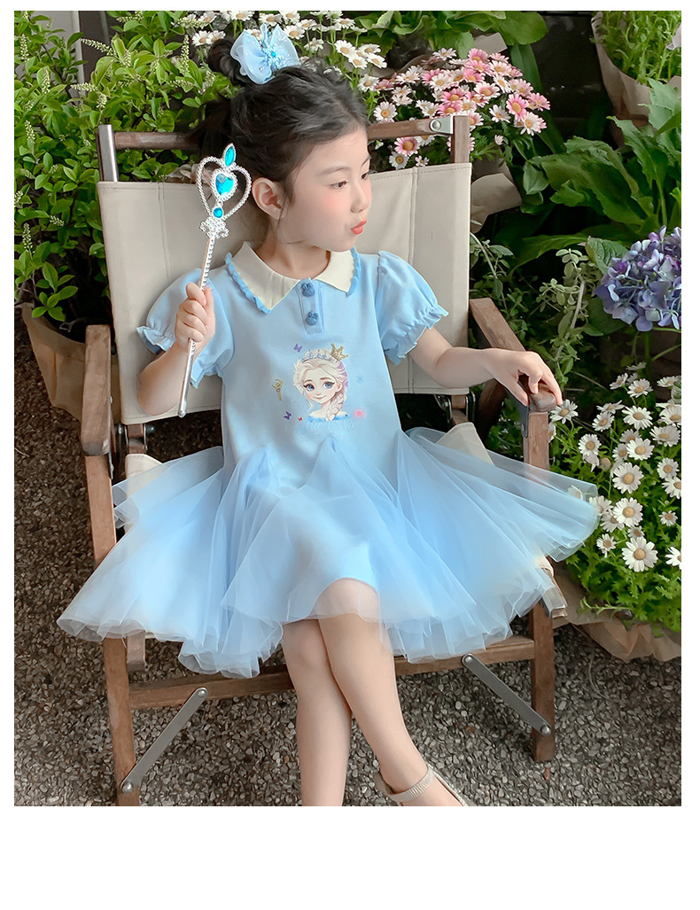 여자 드레스 여름 2025 새로운 스타일 여자 엘사 공주 드레스 어린이 폴로 엘사 스커트 여름 드레스스토어 가기