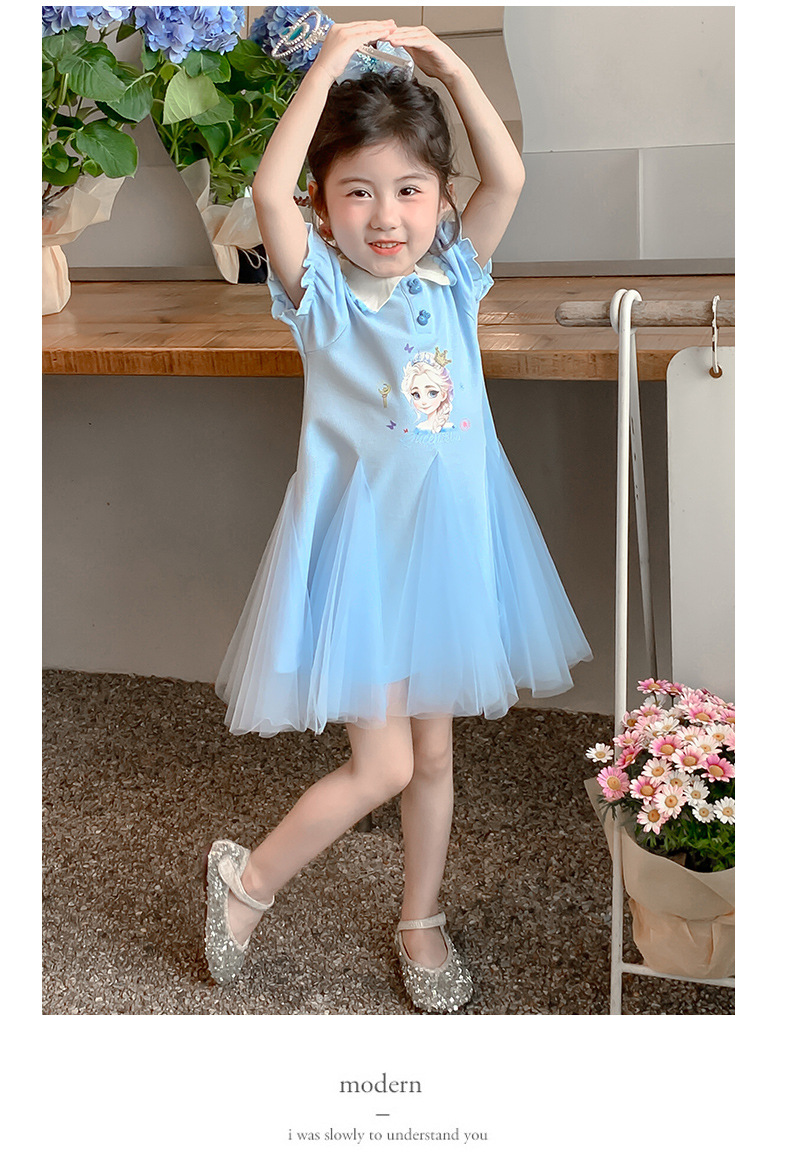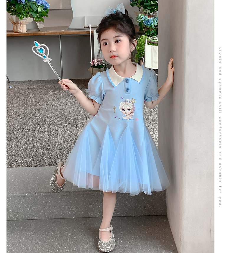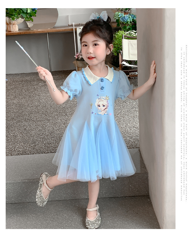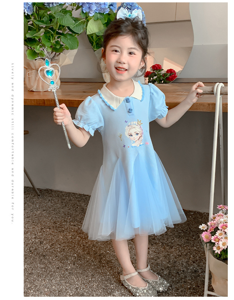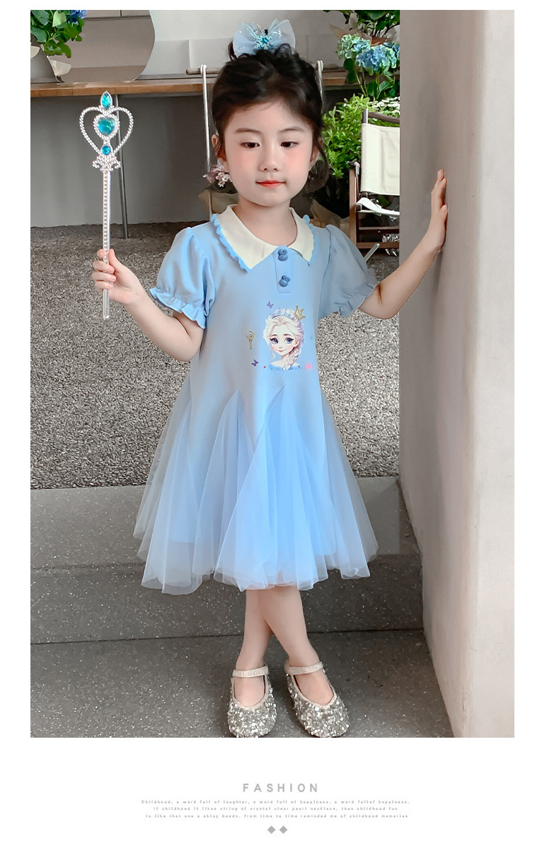 여자 드레스 여름 2025 새로운 스타일 여자 엘사 공주 드레스 어린이 폴로 엘사 스커트 여름 드레스스토어 가기
