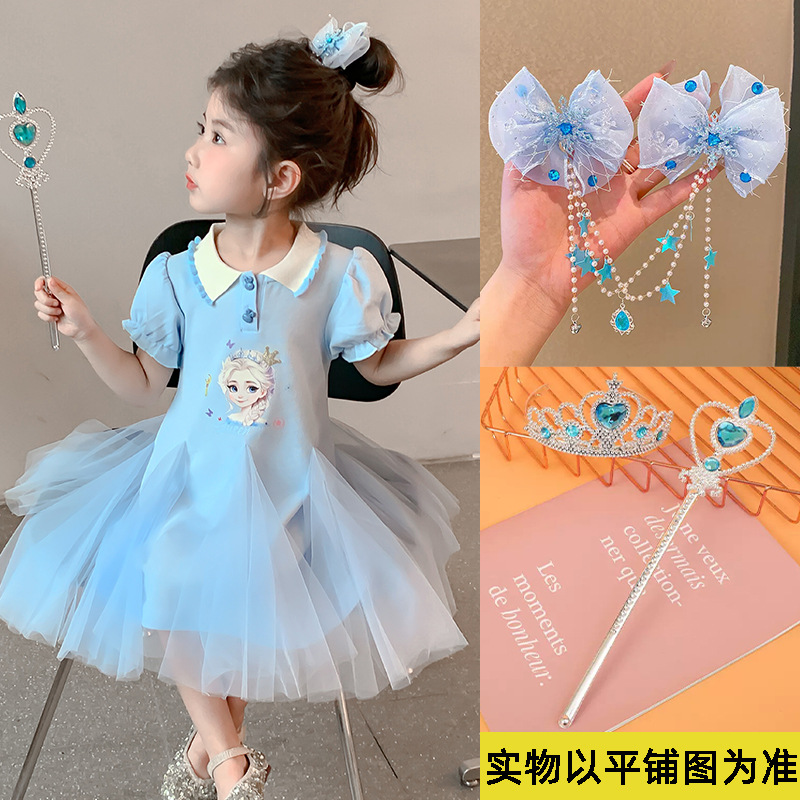 여자 드레스 여름 2025 새로운 스타일 여자 엘사 공주 드레스 어린이 폴로 엘사 스커트 여름 드레스