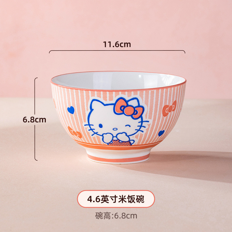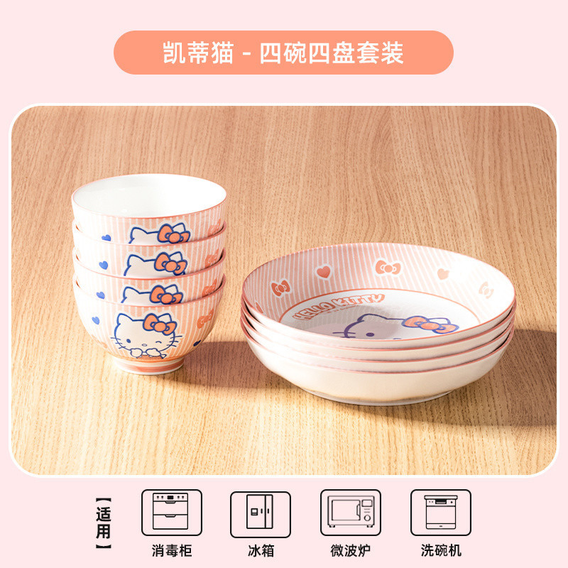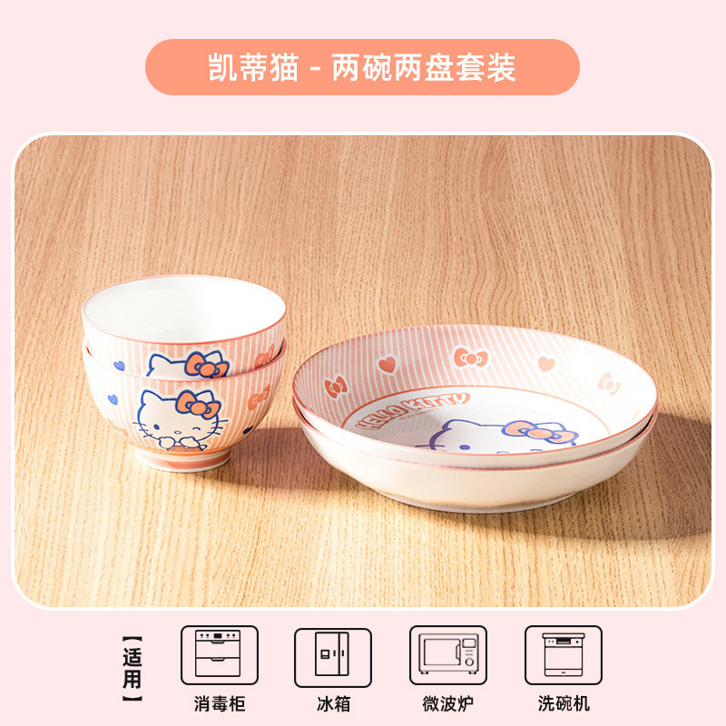 헬로키티 세라믹 세트 그릇과 접시 언더글레이즈 컬러 식기 큰 귀 개 세라믹 그릇 고급스러운 가정용 귀여운스토어 가기