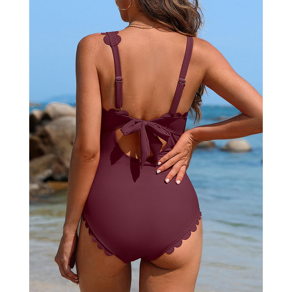 2025년 새로운 유럽과 미국의 섹시한 오프숄더 비키니 아마존 올인원 컷플라워 솔리드 컬러 원피스 수영복
