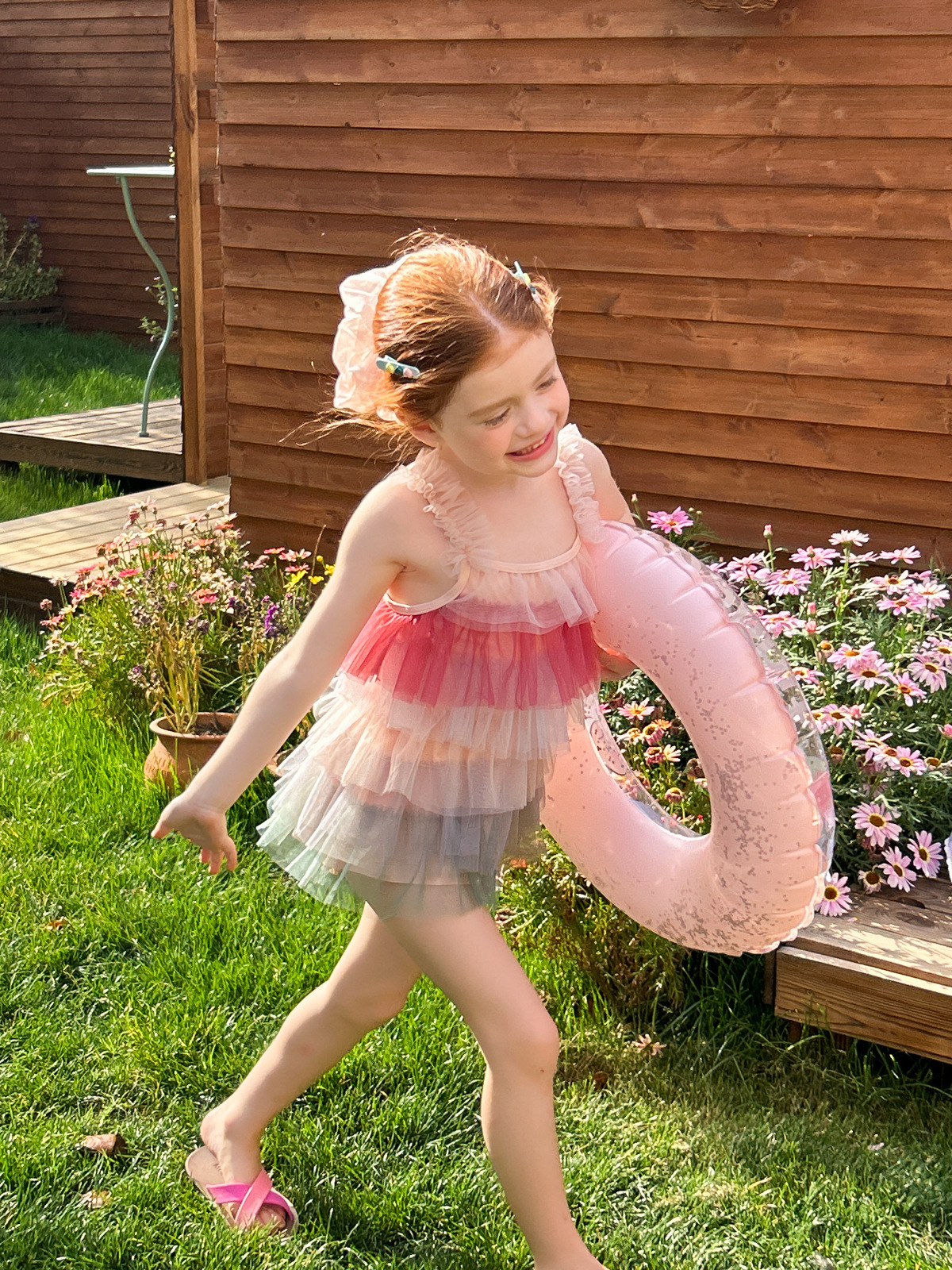 2025 여자 여름 케이크 거즈 스커트 수영복 여름 새로운 어린이 아기 소녀 서스펜더 무지개 원피스 수영복스토어 가기
