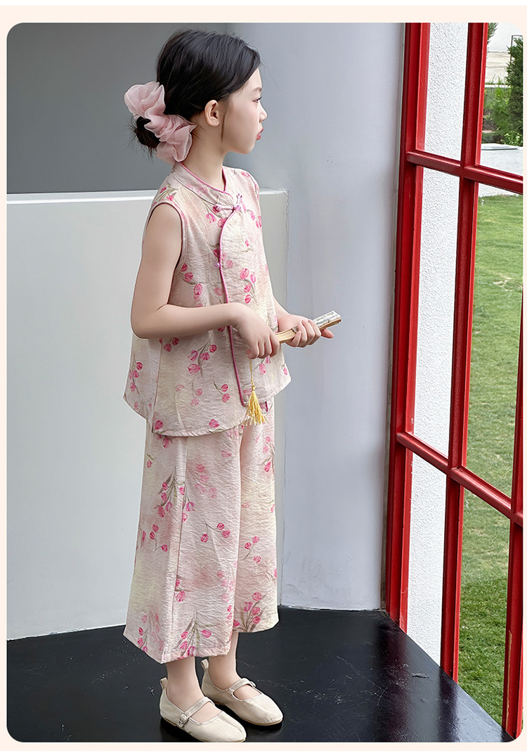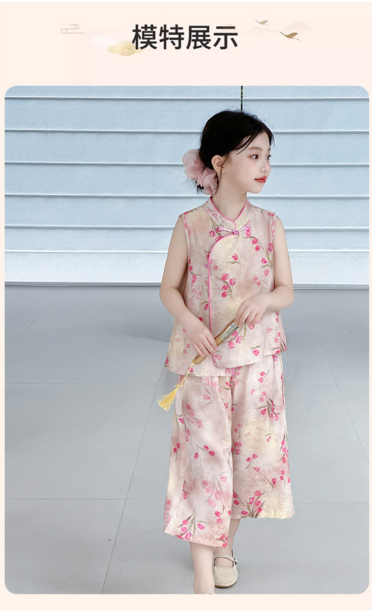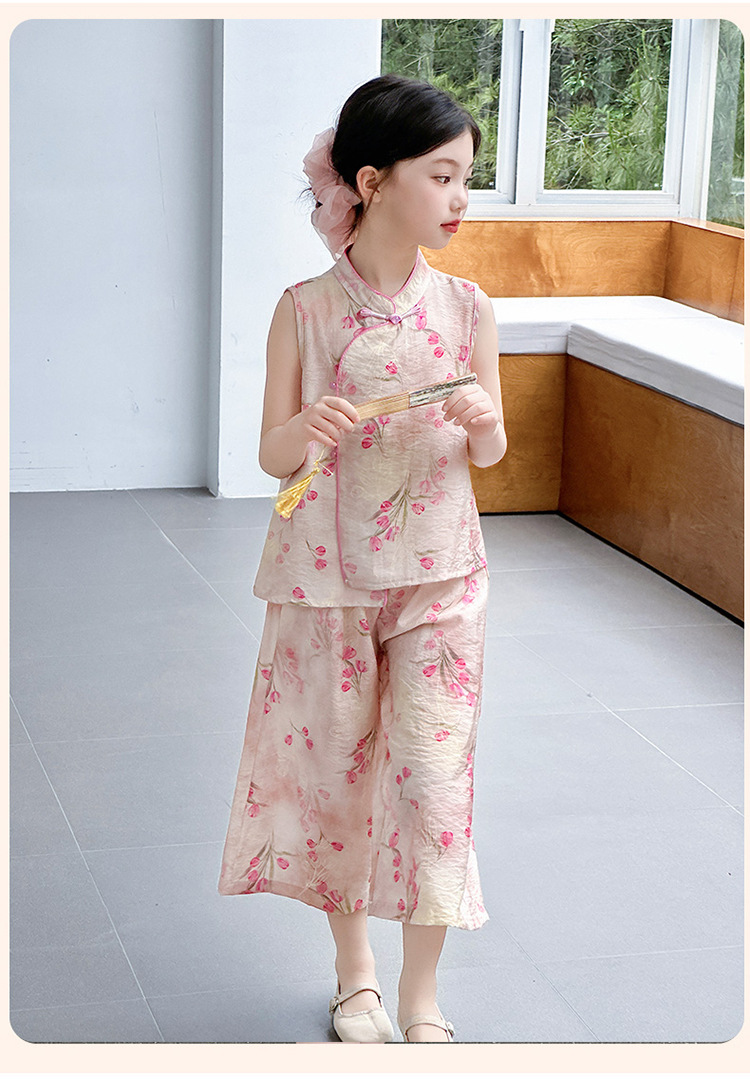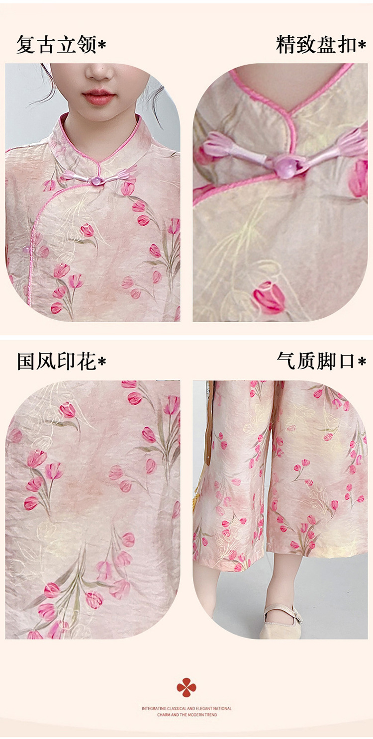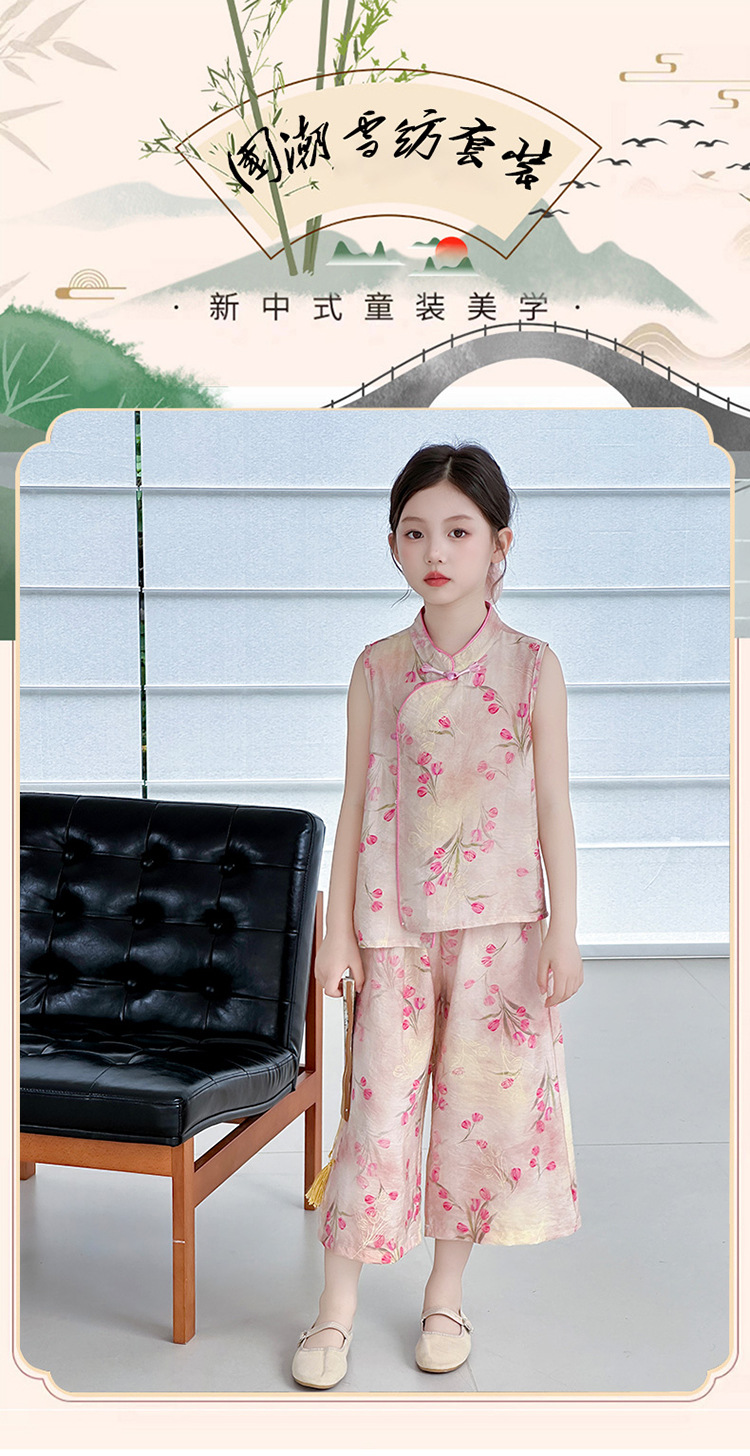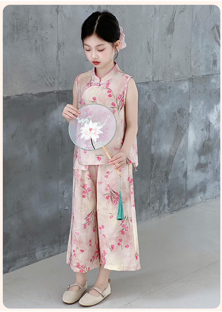 여아복 여름 얇은 스타일 2026년 신상 아동복 세련된 복고풍 새로운 중국풍 전통 의상 투피스 세트