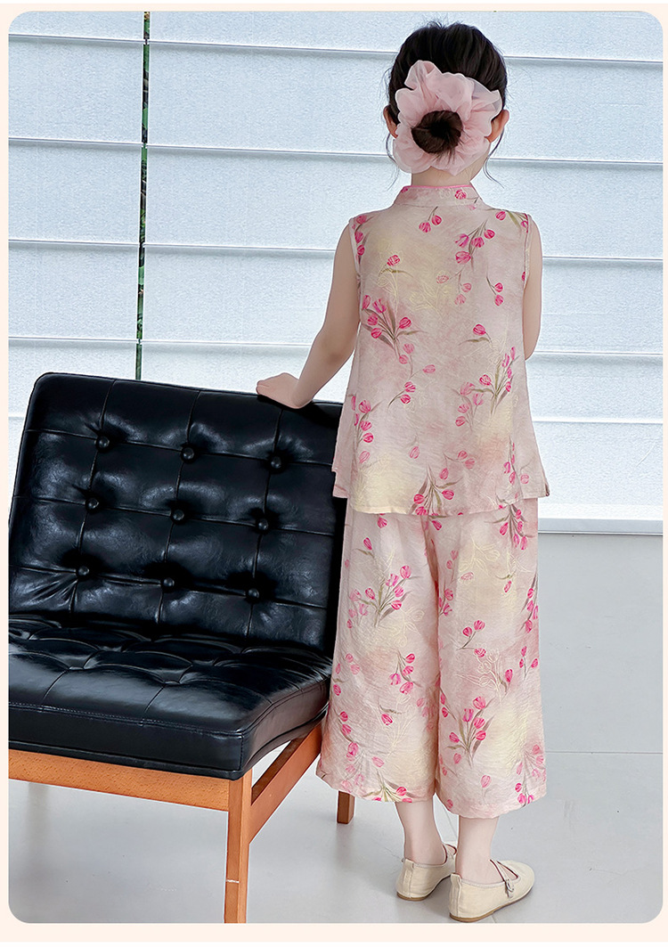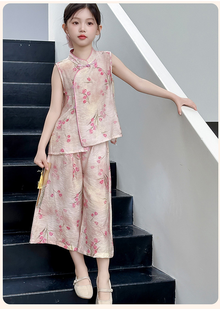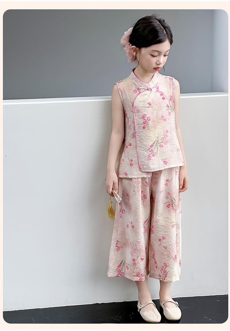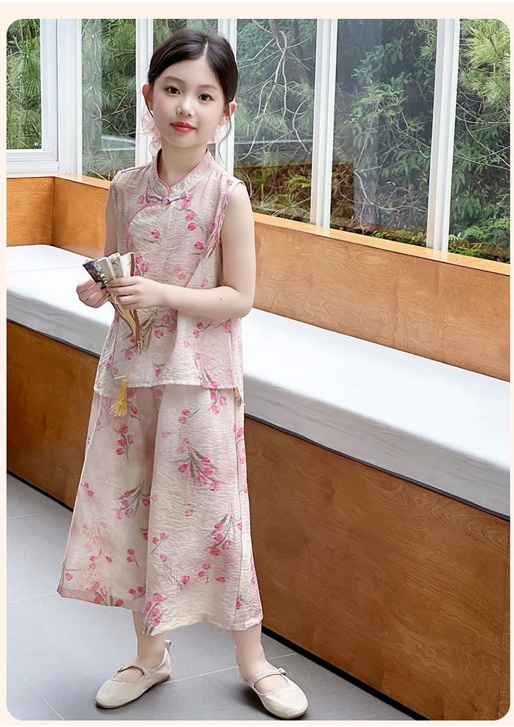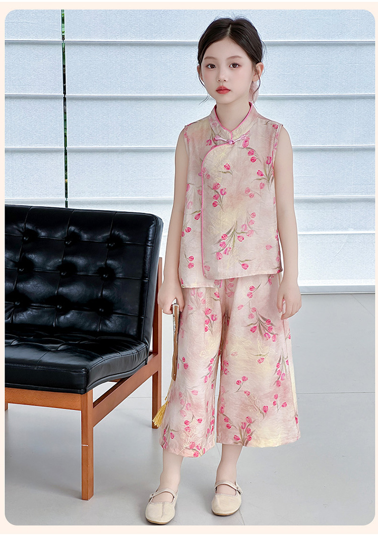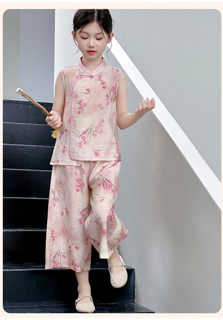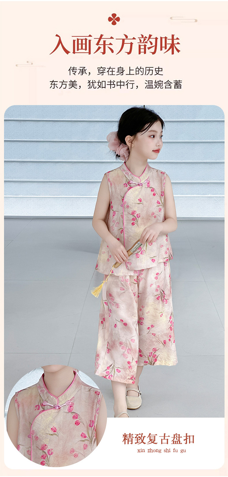 여아복 여름 얇은 스타일 2026년 신상 아동복 세련된 복고풍 새로운 중국풍 전통 의상 투피스 세트
