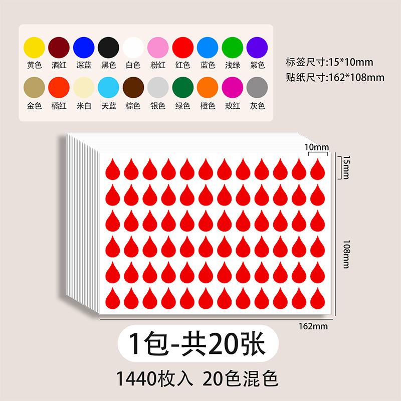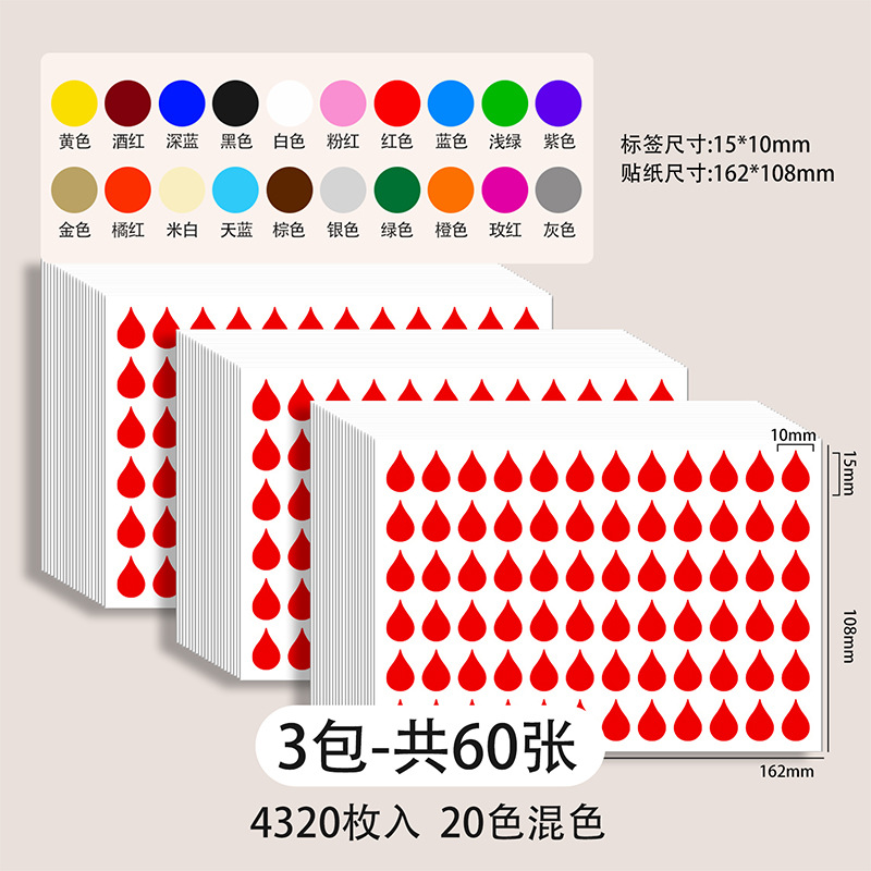 다채로운 물방울 모양의 독서 색인 스티커, 빗방울 스티커, 라벨 스티커, 접착식 마킹 스티커, 책갈피 표시 스티커, 분류 스티커