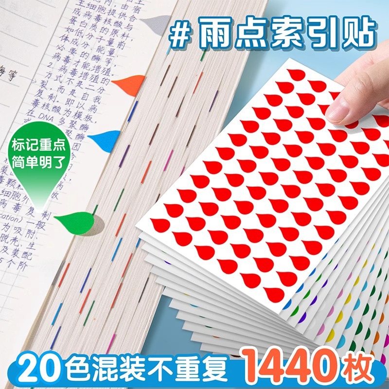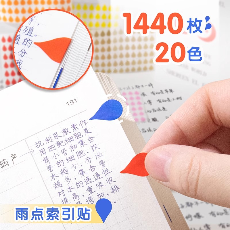 다채로운 물방울 모양의 독서 색인 스티커, 빗방울 스티커, 라벨 스티커, 접착식 마킹 스티커, 책갈피 표시 스티커, 분류 스티커스토어 가기