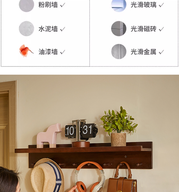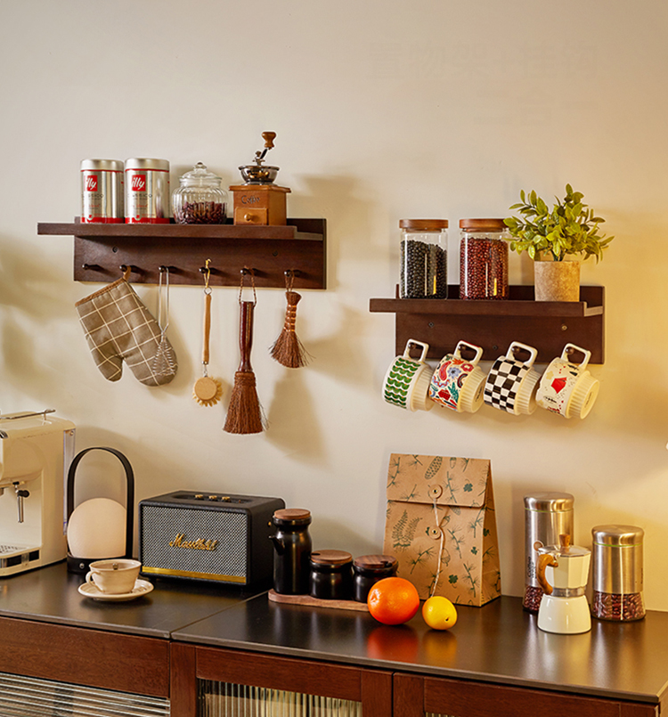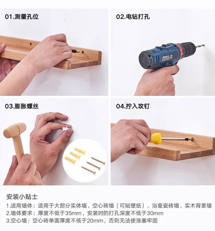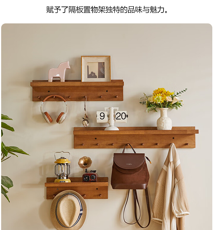 후크가있는 도매 벽 선반 벽 단단한 나무 보드 거실 화장실 벽걸이 나무 파티션 무료