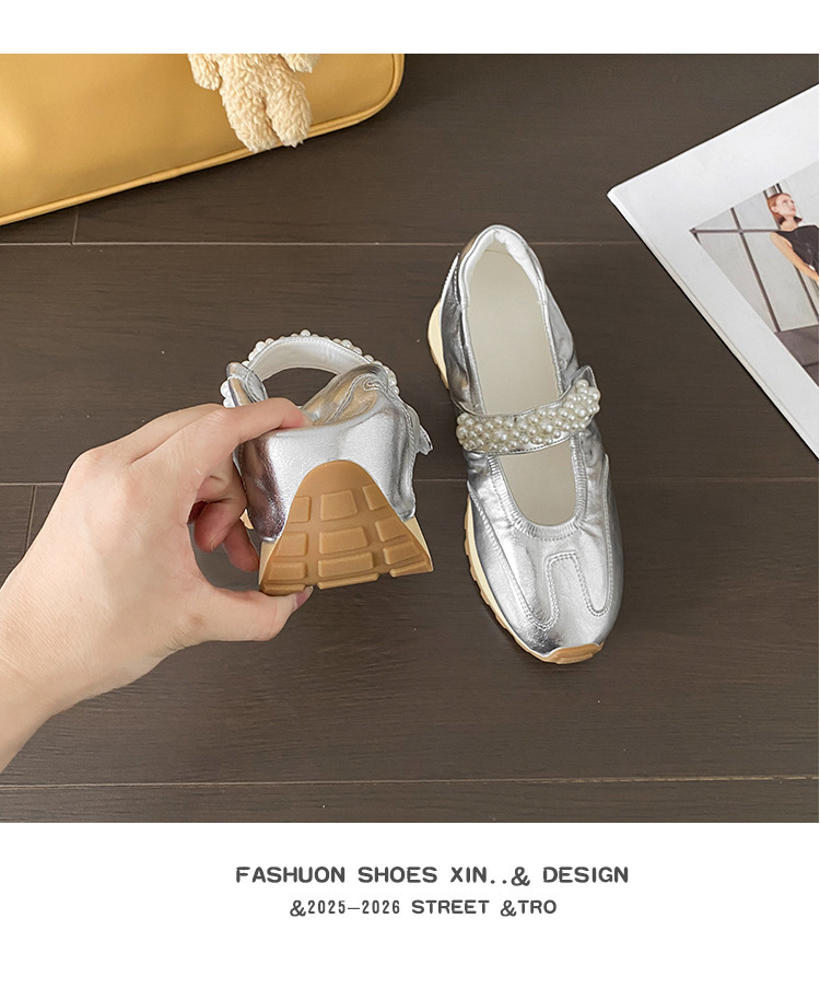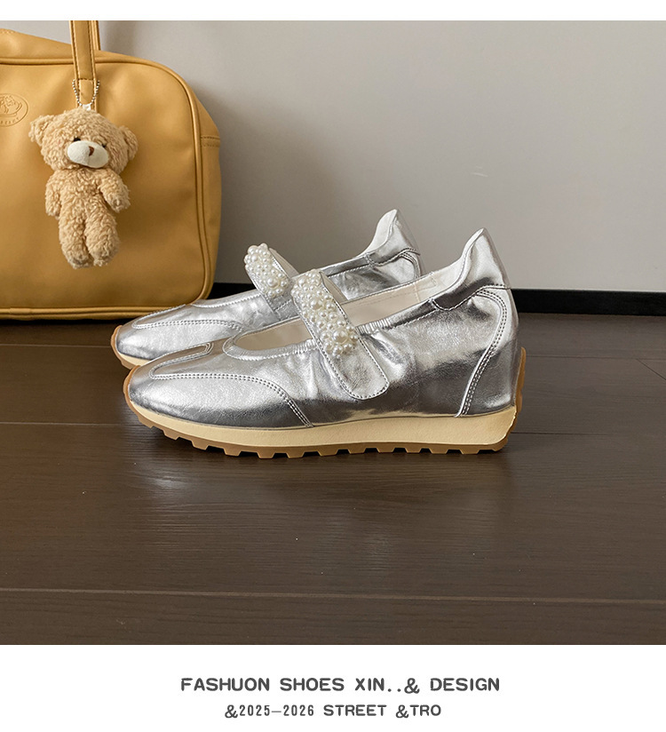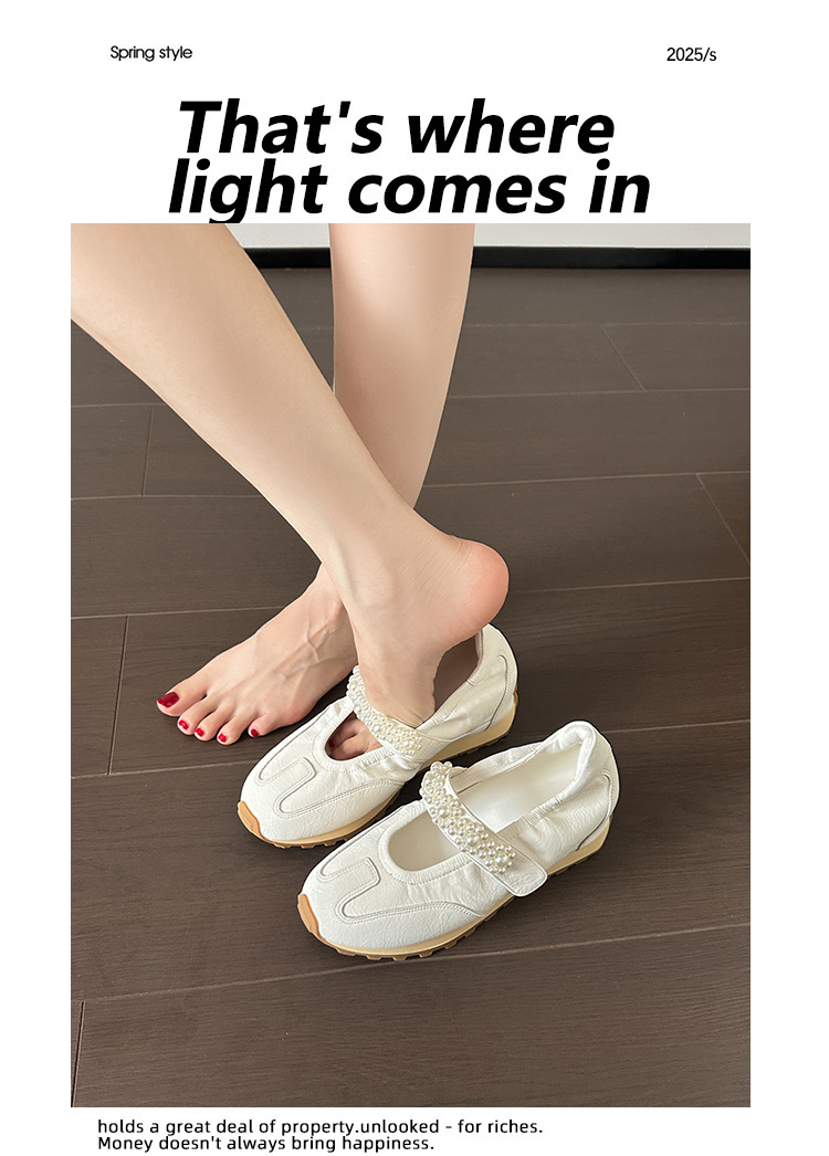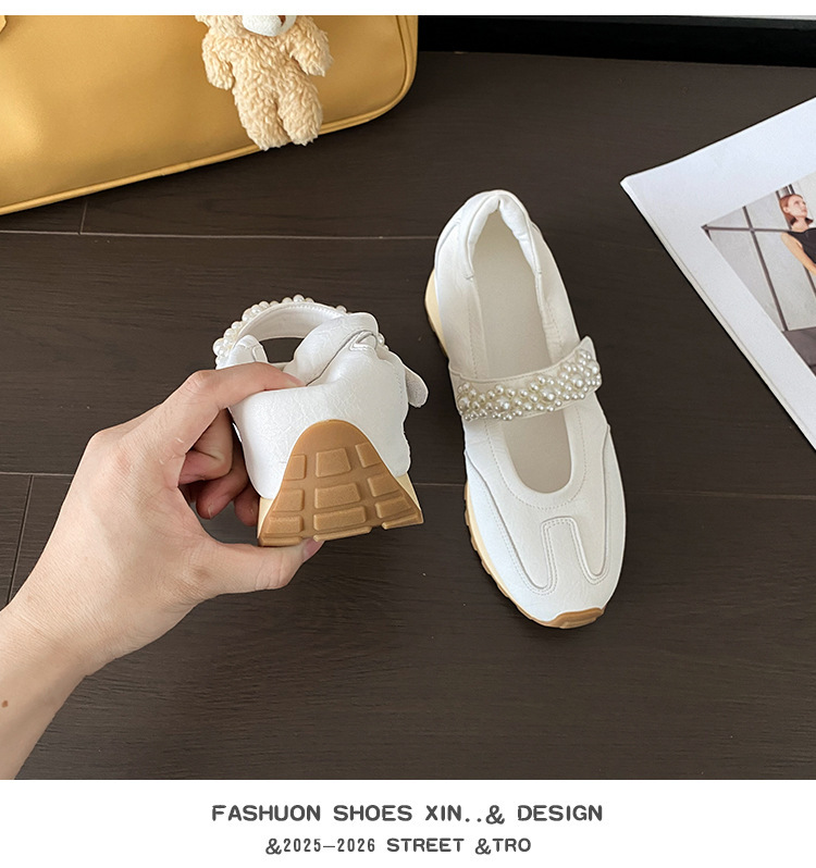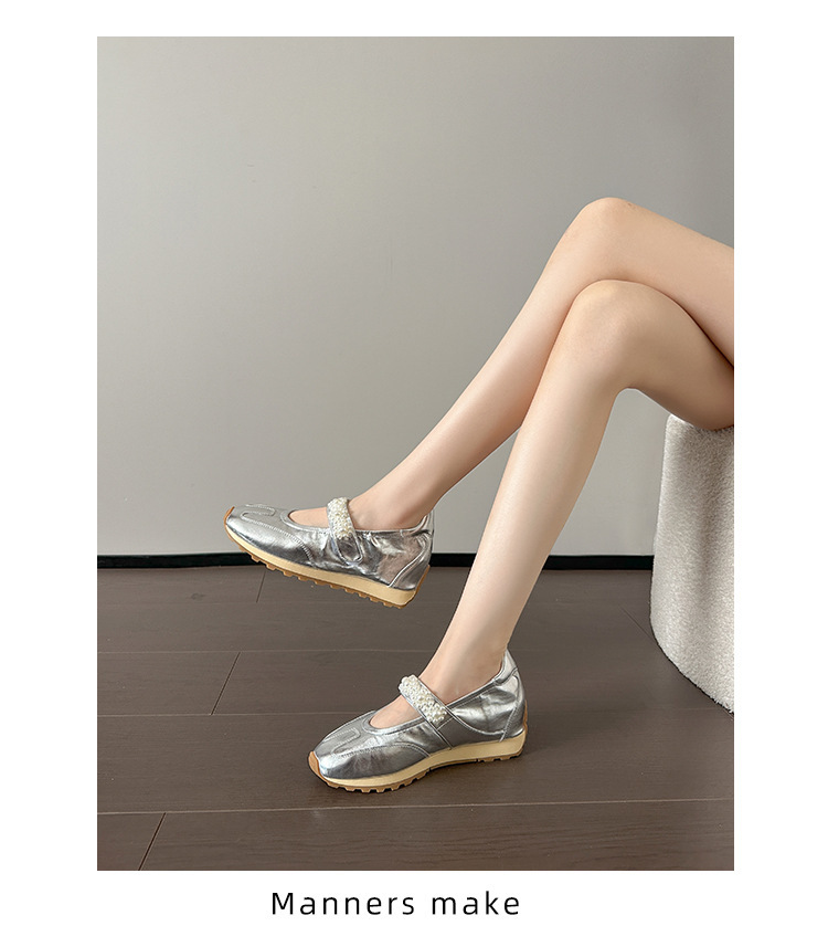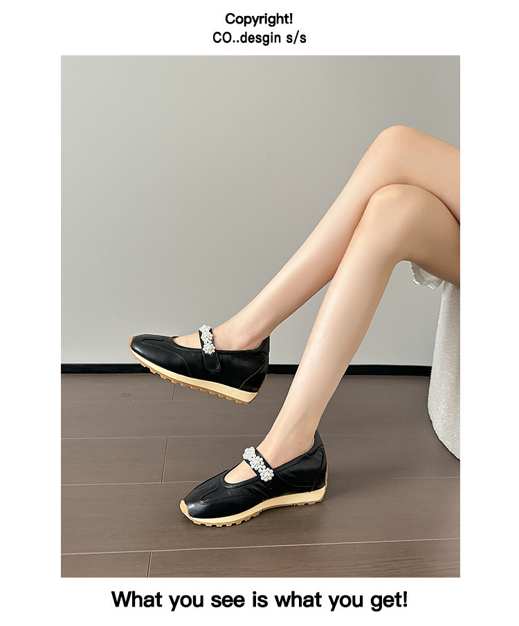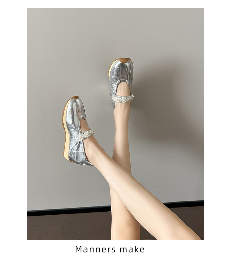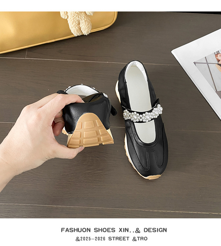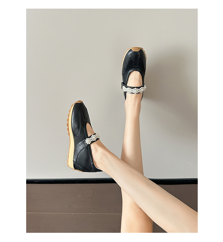 양가죽 복고풍 스포츠 스타일 신발 발레 슈즈 여성용 두꺼운 밑창 진주 스트랩 캐주얼 다용도 포레스트 검프 신발 메리 제인 신발스토어 가기