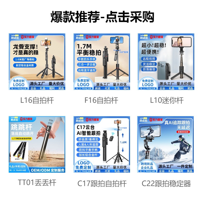 • C16 [블랙] 1.8m 알루미늄 합금 폴*지능형 손떨림 방지 얼굴 추적*AI 제스처 제어*블루투스 리모컨