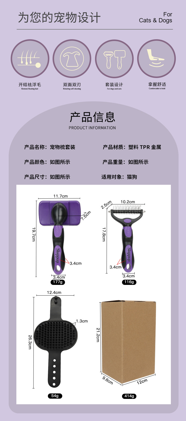 现货宠物梳子套装猫咪美容针梳狗狗去浮毛开结梳狗梳子猫梳子