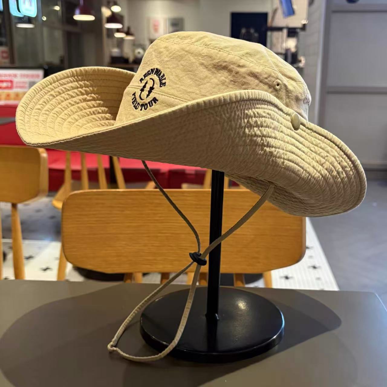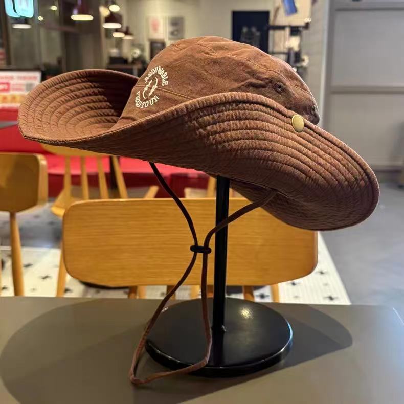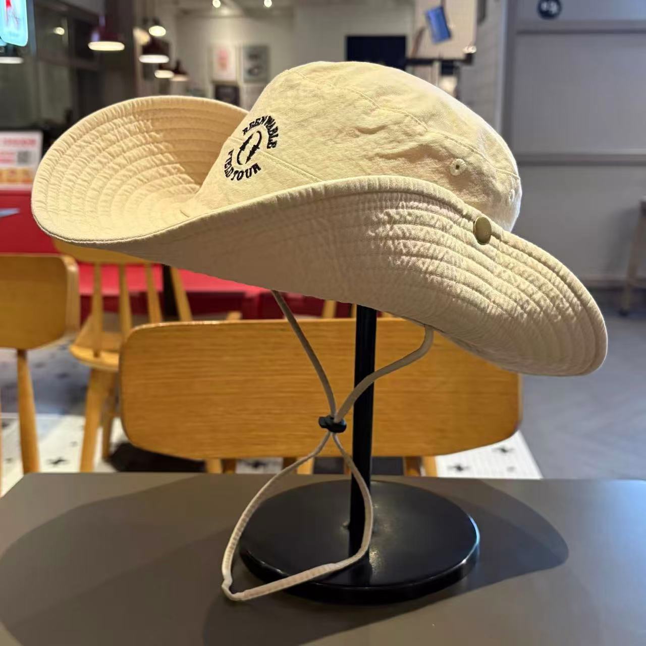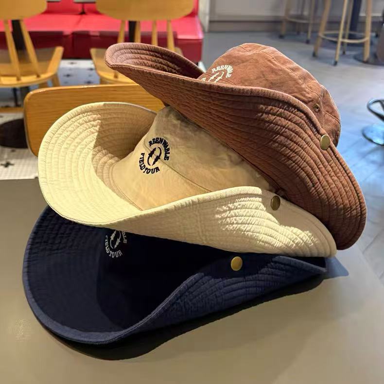 봄, 가을, 여름 여성용 야외 캠핑 하이킹 모자 일본식 하이킹 어부 모자 큰 챙 태양 보호 서양 카우보이 모자