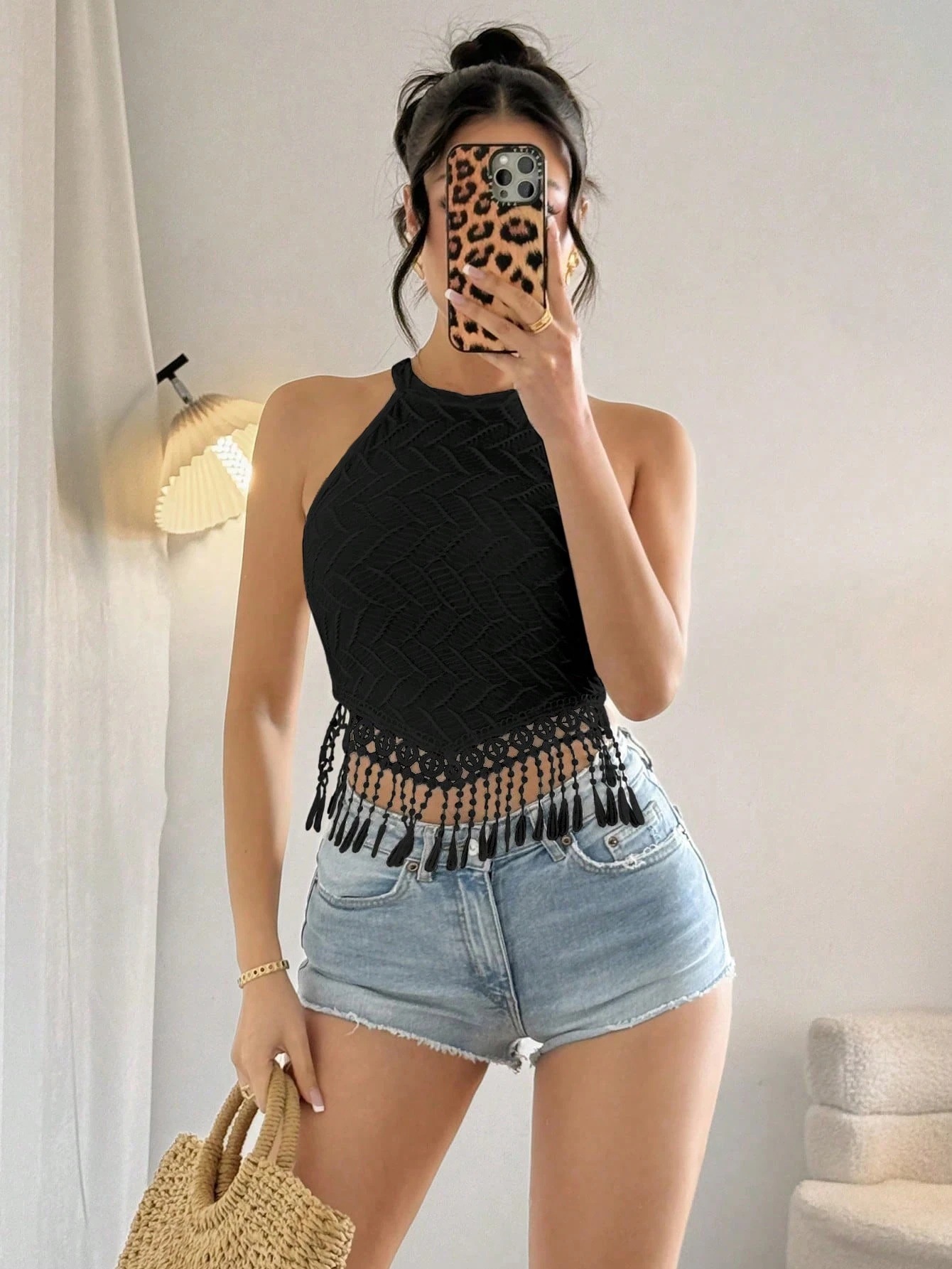 2026년 알리익스프레스 여성 의류 봄 여름 신상 우아한 프린지 탱크탑 숏 슬림핏 크롭탑