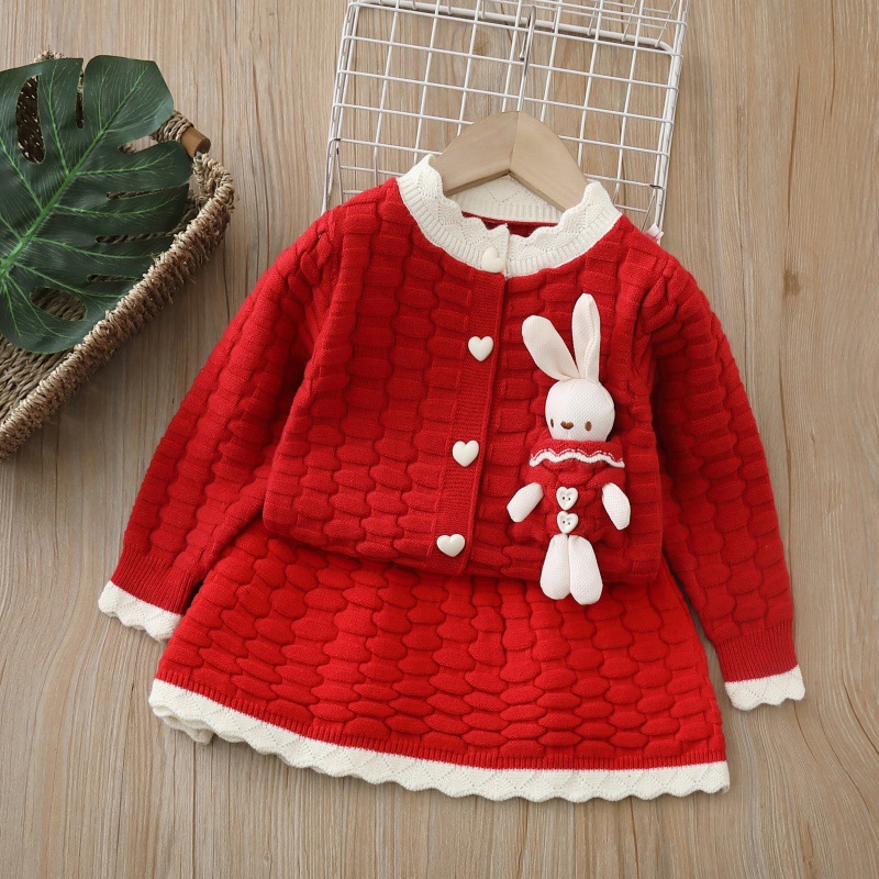 여아용 스웨터 재킷 2025 신상 니트 정장 스커트 큰 칼라 여아 정장
