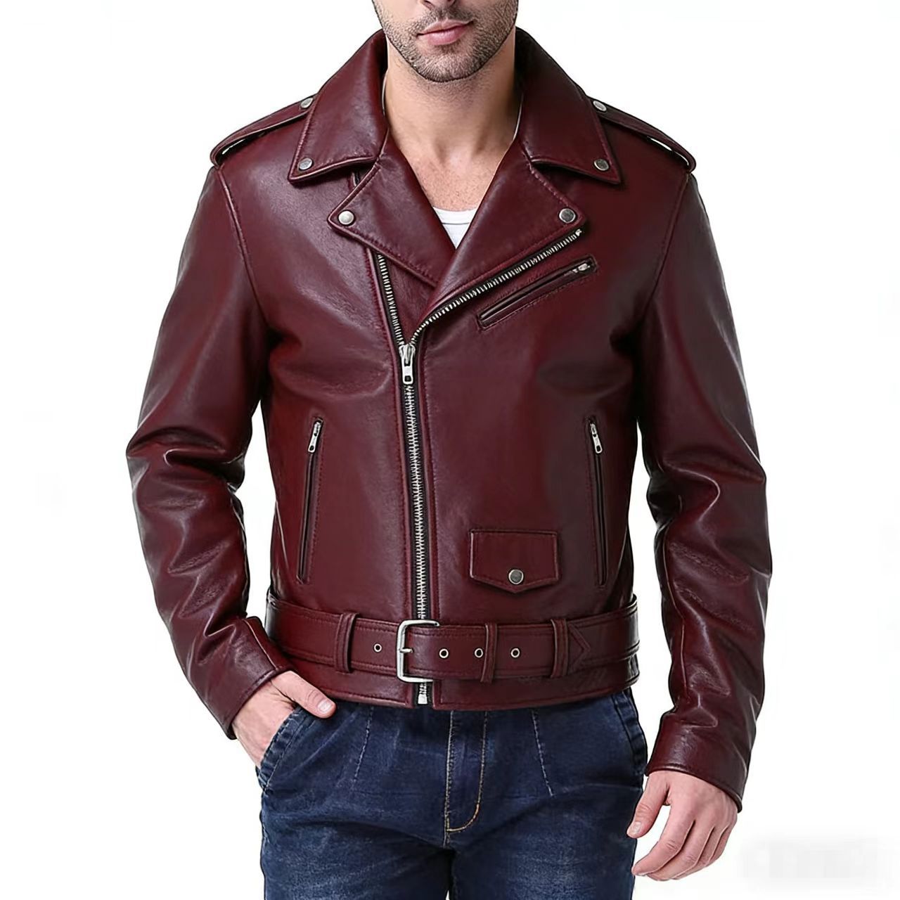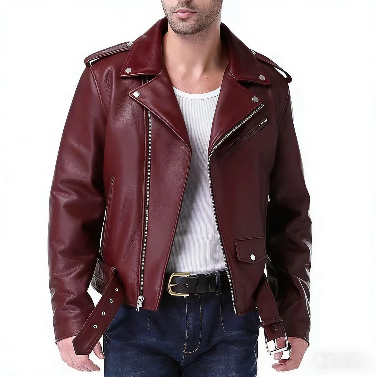 2025 국경 간 대외 무역 남성 pu 가죽 오토바이 가죽 코트 가을 옷깃 가죽 코트 한국 스타일 가죽 자켓 공장 도매