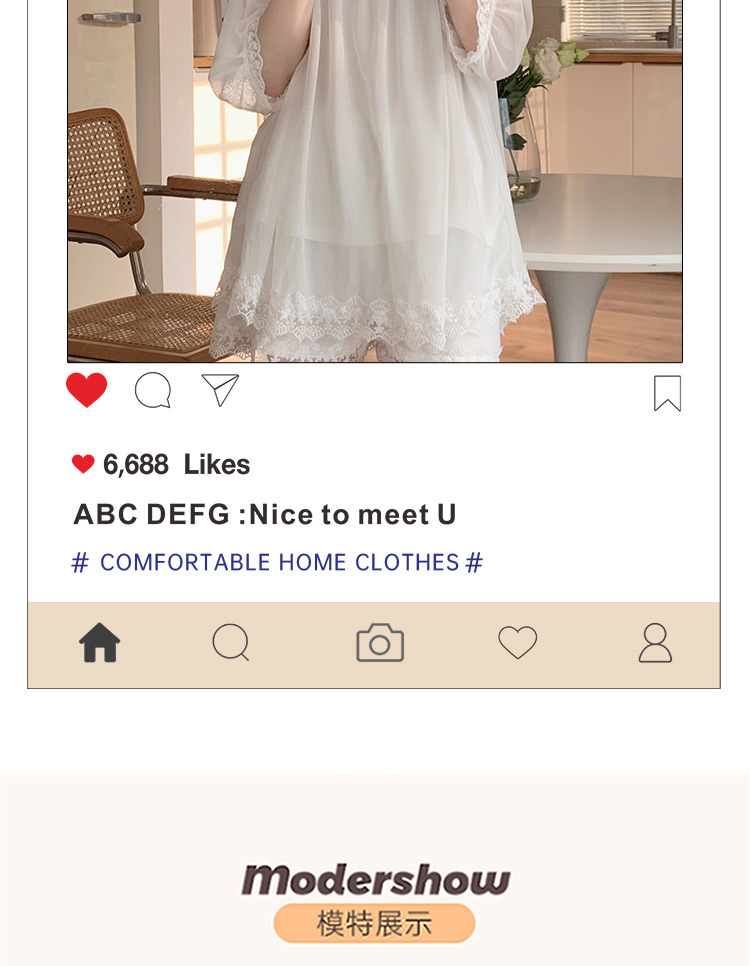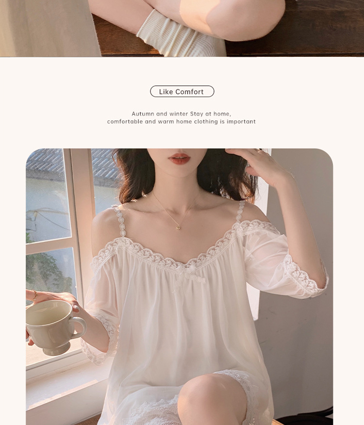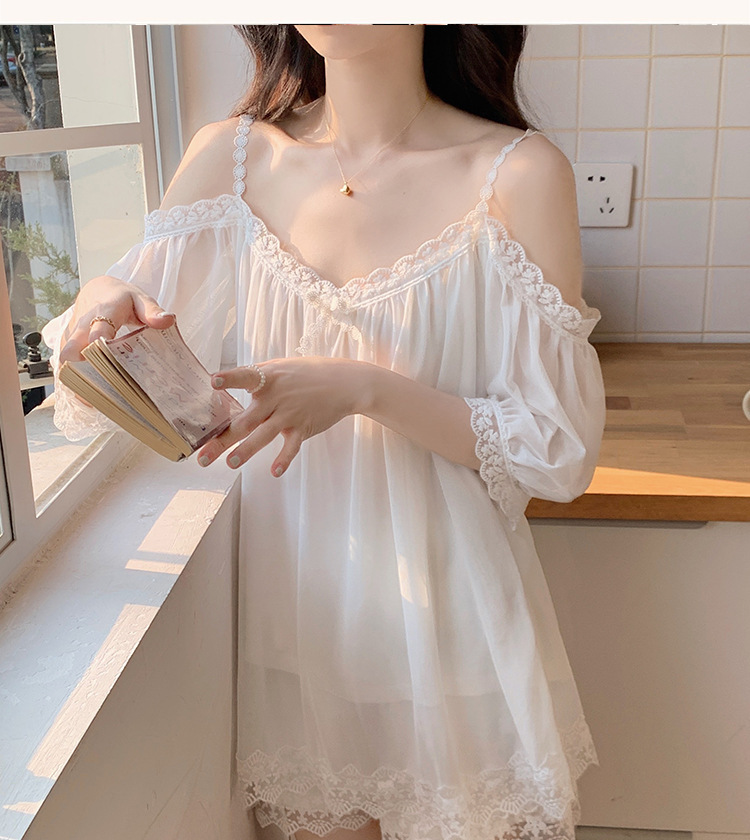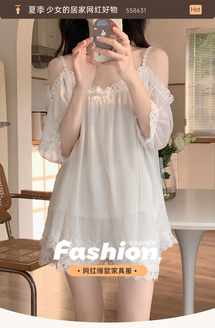 원 숄더 가슴 패드 메쉬 잠옷 세트 여름 레이스 얇은 느슨한 여성 홈웨어 새로운 투피스 세트 319스토어 가기