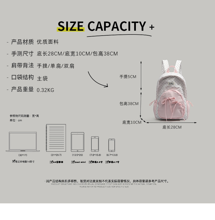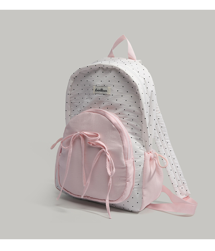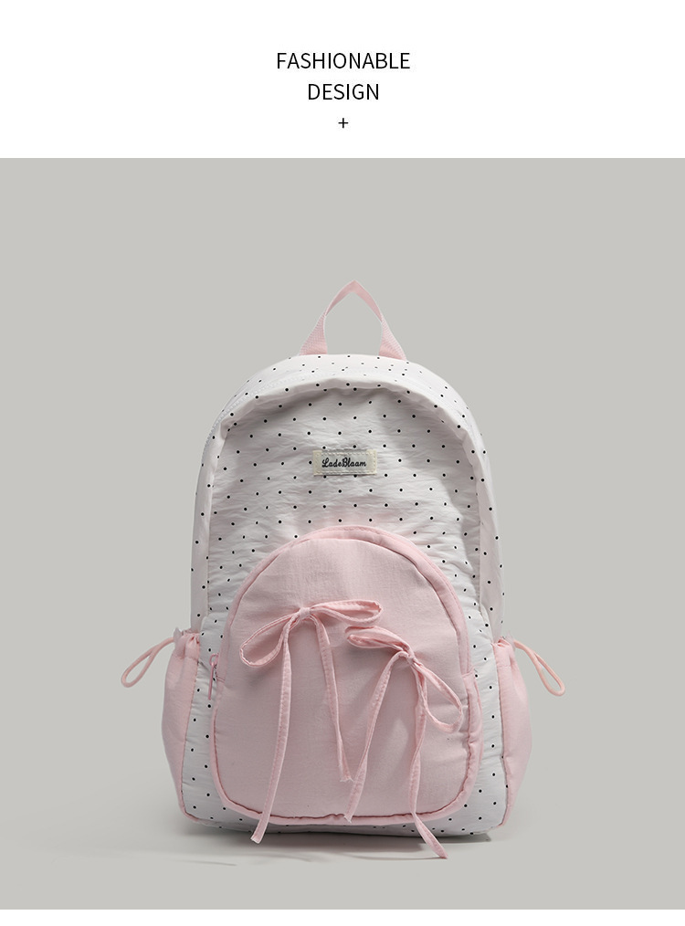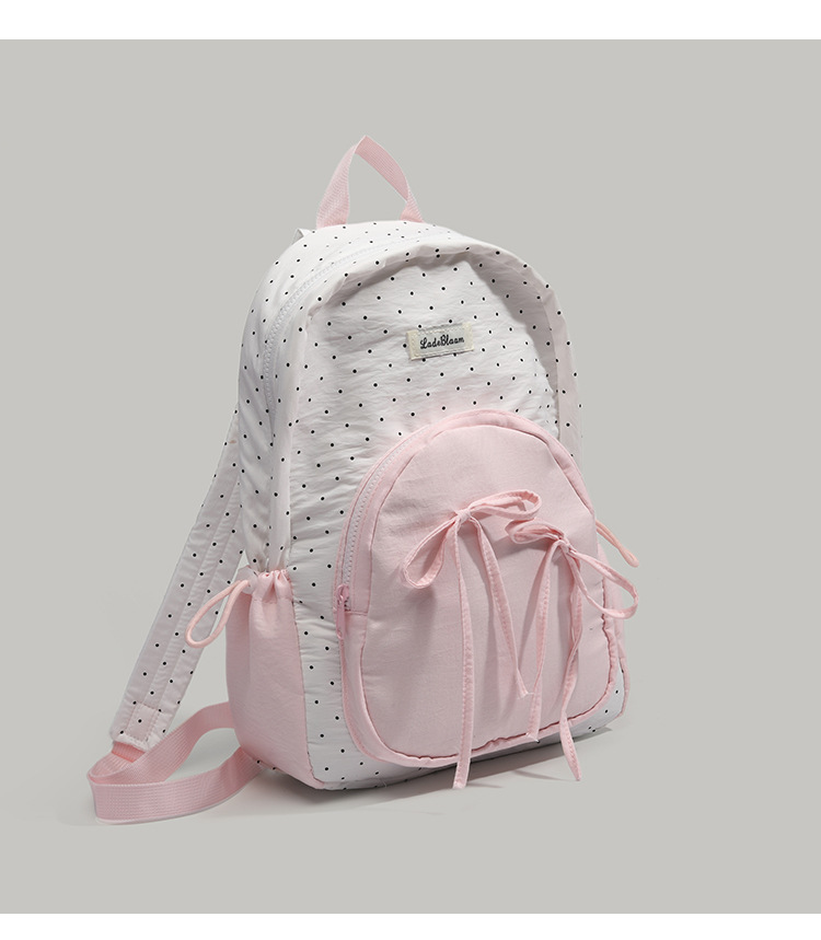 여학생을 위한 귀엽고 달콤한 여아 배낭, 다용도 학교 가방, 한국 대학 스타일 리본 도트 배낭