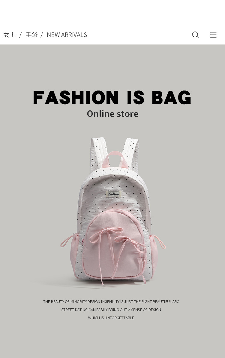 여학생을 위한 귀엽고 달콤한 여아 배낭, 다용도 학교 가방, 한국 대학 스타일 리본 도트 배낭스토어 가기