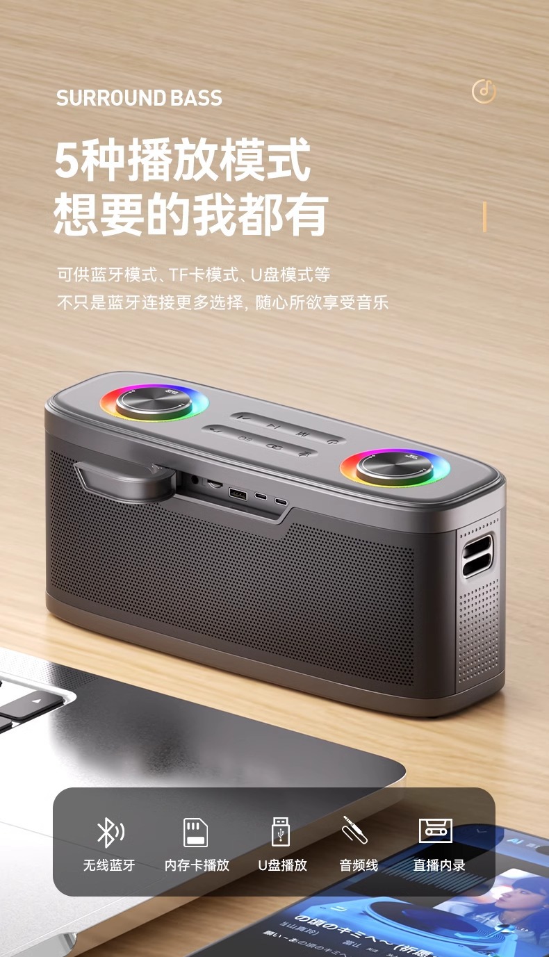 노래를위한 마이크가있는 야외 노래방 오디오 앰프 올인원 가정용 소형 블루투스 스피커 서브 우퍼 무선 스피커