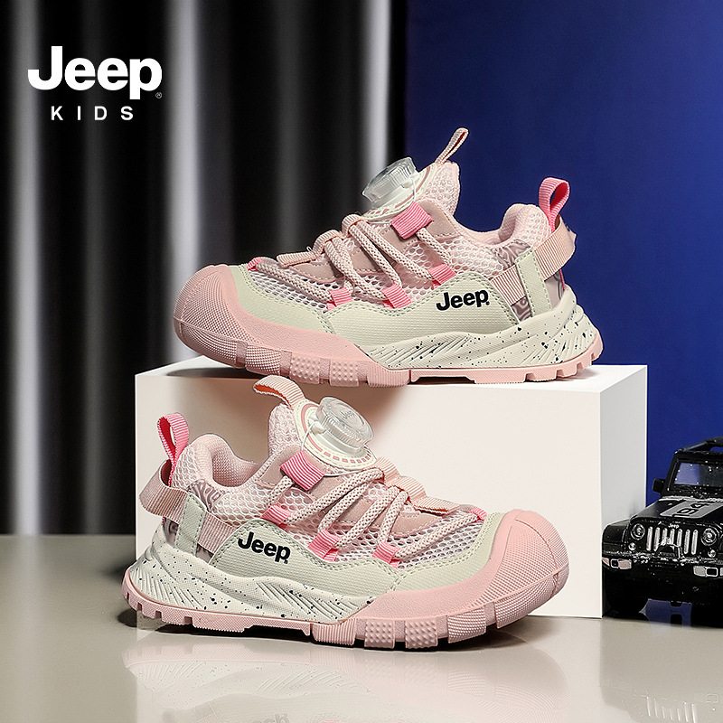 Jeep 소년 스포츠 신발 2025 여름 새로운 스타일 편안하고 가벼운 소녀 회전 버튼 캐주얼 신발 통기성 신발