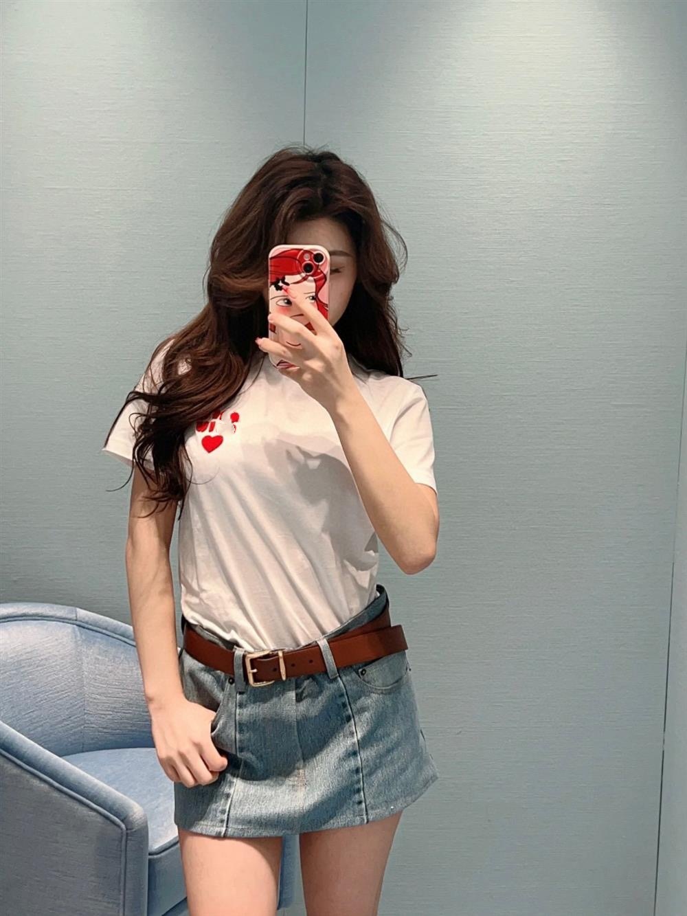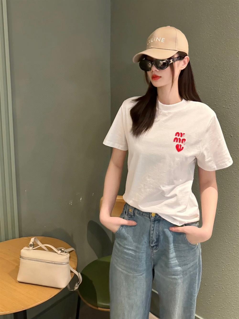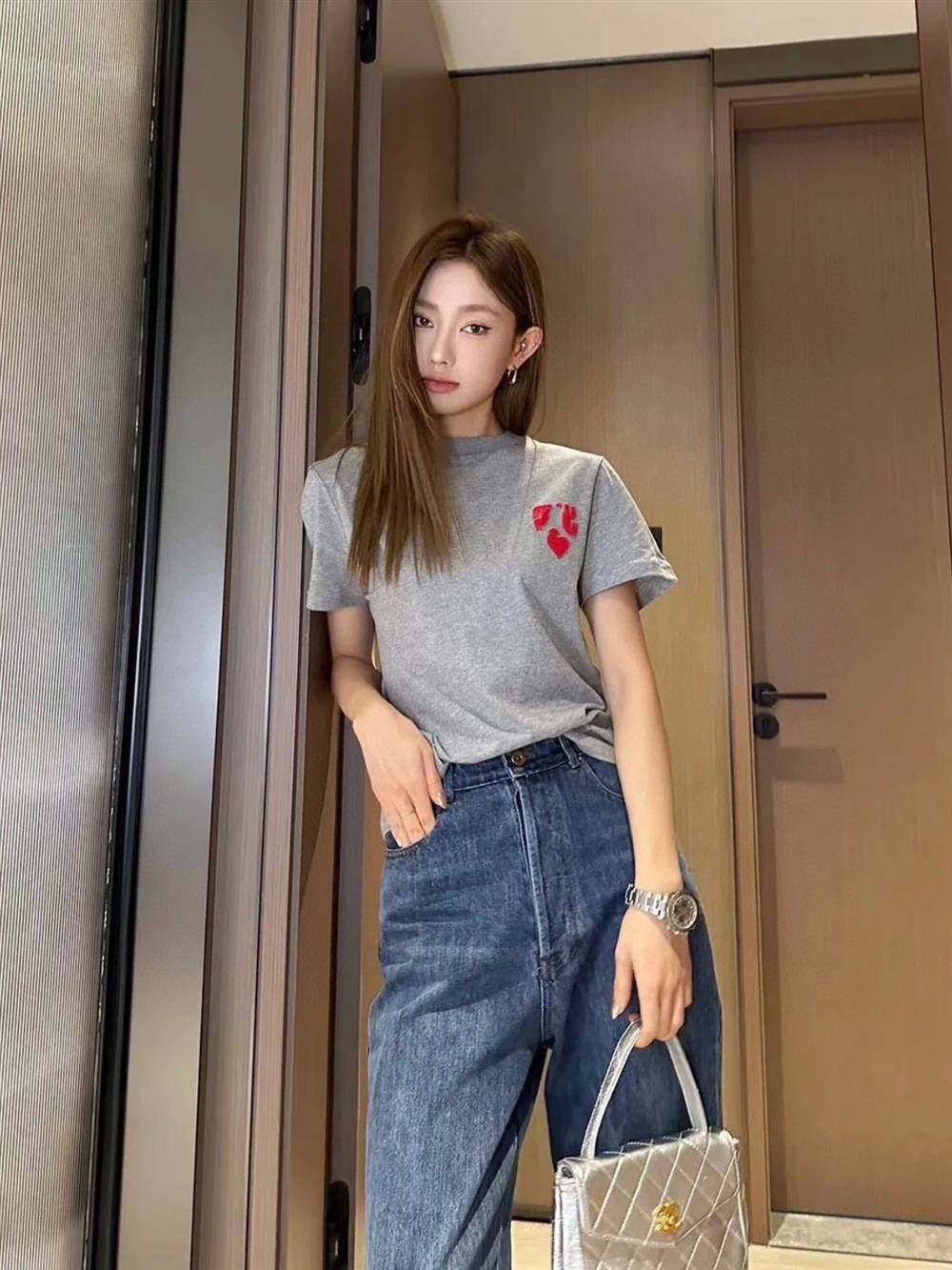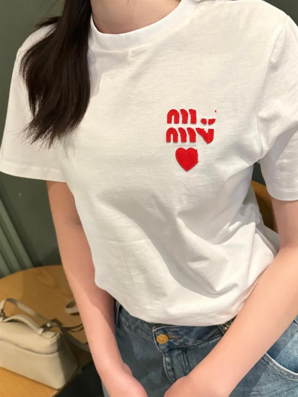 M 시리즈 입체 패치워크 하트 자수 반팔 여성용 루즈핏 라운드넥 풀오버 티셔츠 다용도 2026 봄 신상품스토어 가기