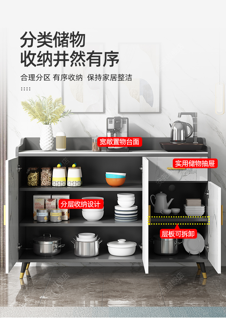 슬레이트 찬장, 심플 모던 티 캐비닛, 가벼운 고급 수납 캐비닛, 주방 식기 캐비닛, 거실 일체형 벽 캐비닛스토어 가기