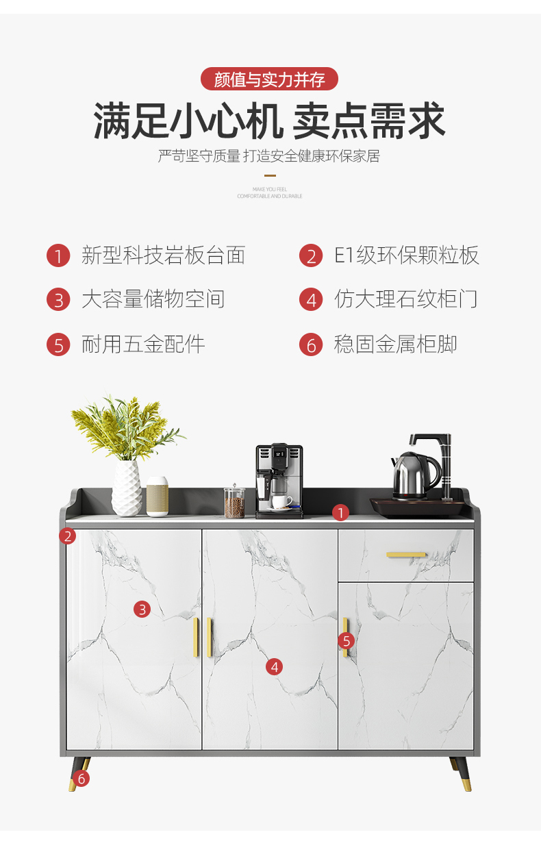 슬레이트 찬장, 심플 모던 티 캐비닛, 가벼운 고급 수납 캐비닛, 주방 식기 캐비닛, 거실 일체형 벽 캐비닛
