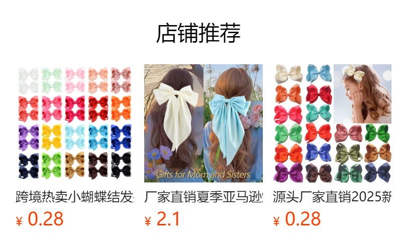 국경 간 Xiyin temu 한국 양면 새틴 활 머리핀 1 위안 이우 작은 보석 다목적 클립 도매스토어 가기