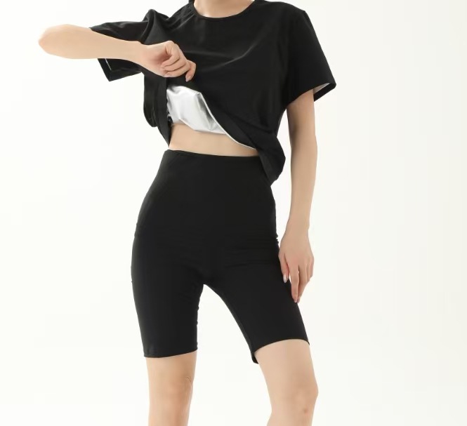 스웨트 조끼 + 반팔 브레스트 풀 코팅 슈트 피트니스 요가 바지 체중 감량 러닝 아우터 사이클링 스포츠 바지