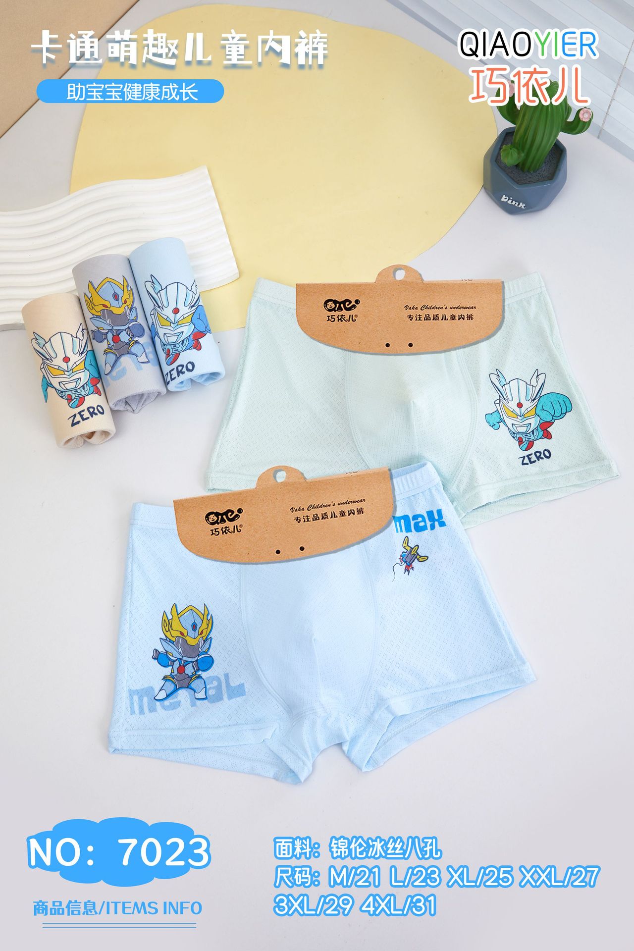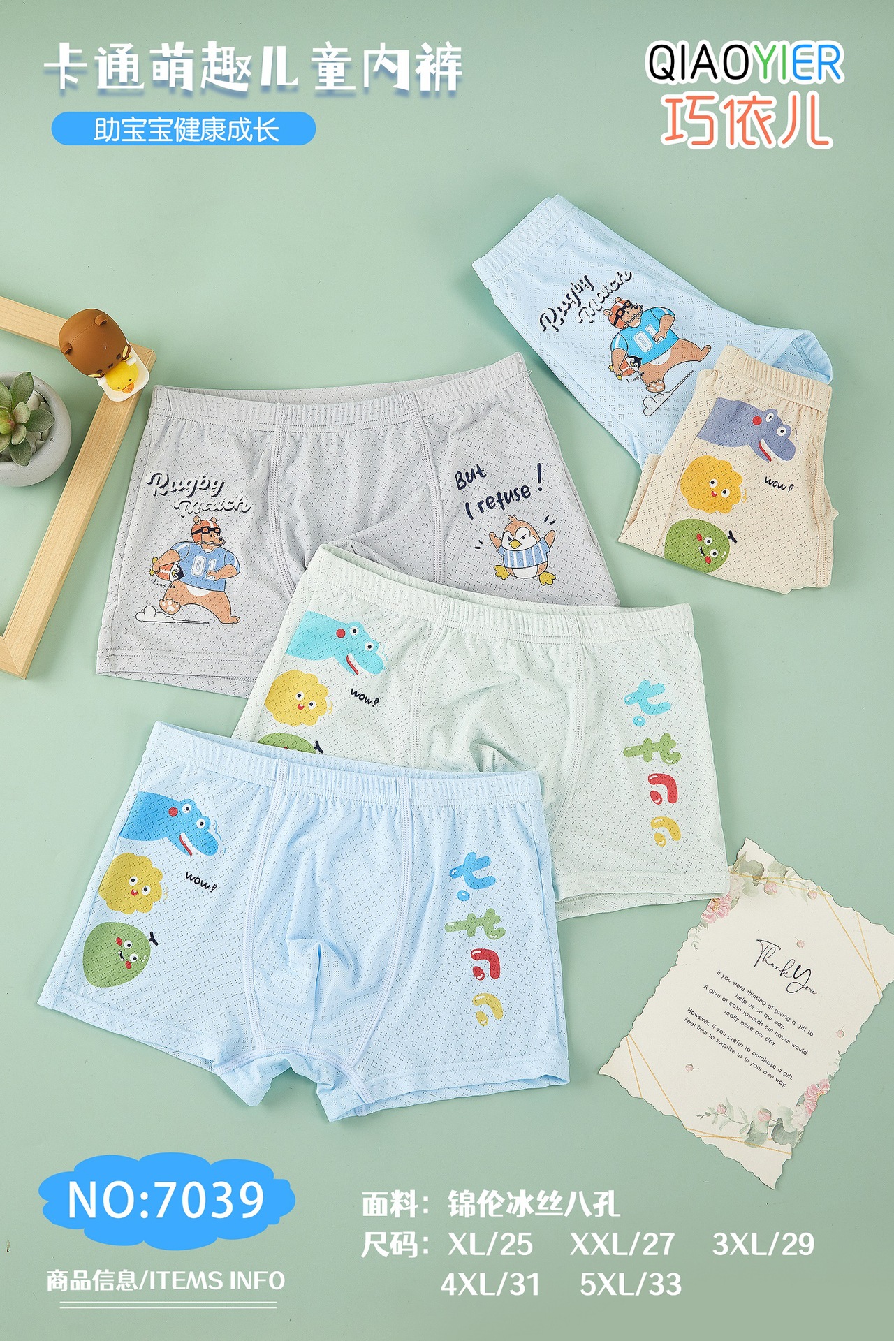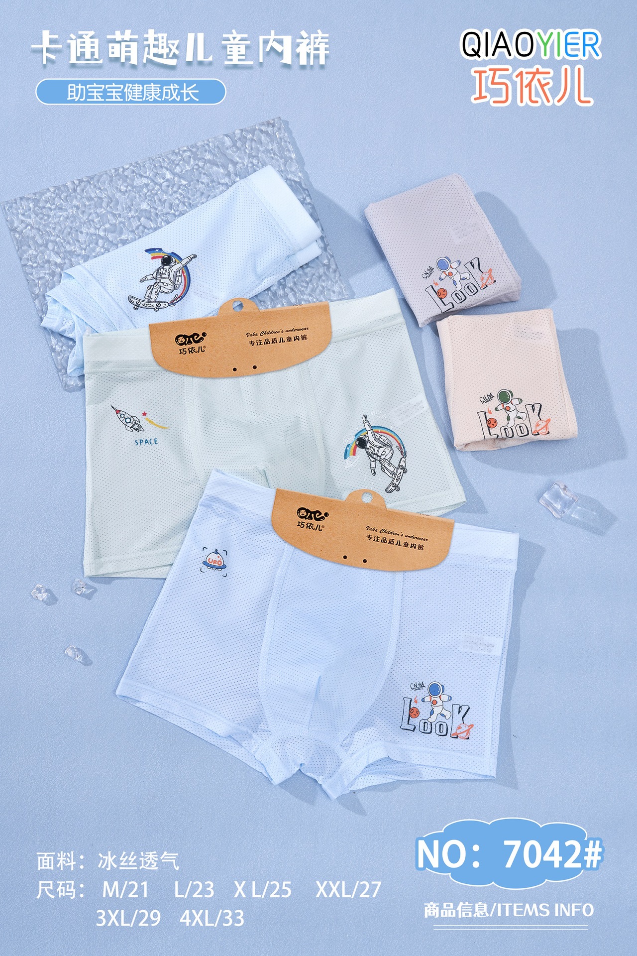 차오이어 아이스 실크 아동용 사각팬티 남아용 A급 사각팬티 여름용 유아 및 어린이용
