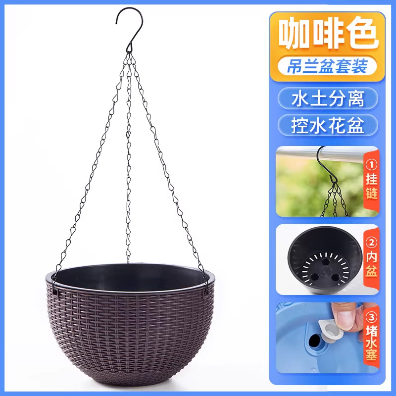 • 갈색 등나무 천공 화분 + 식재 바구니 + 철제 체인 + 물 마개