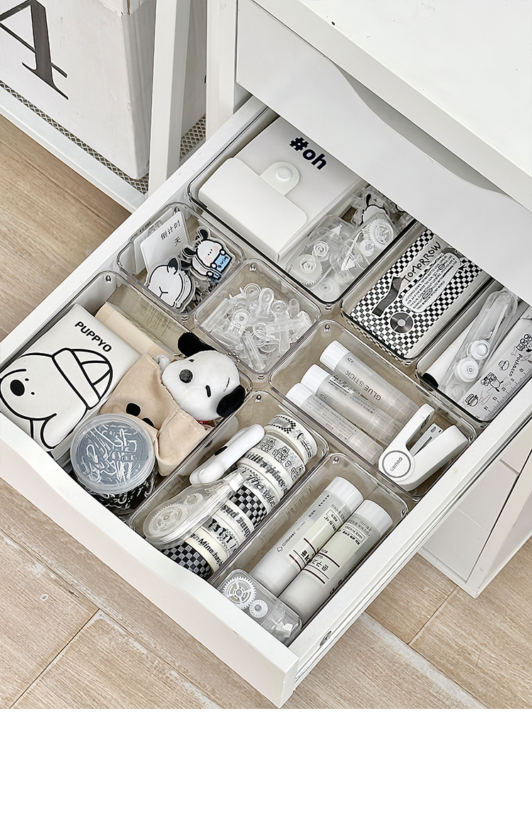 서랍이 내장된 책상, 분리형 수납함, 아크릴 문구류 및 화장품 수납함, 거실 잡화 정리함