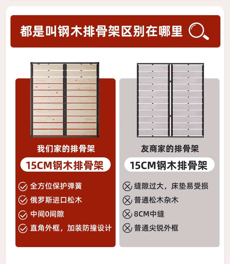 • 침대 + 척추 보호 캐시미어 니트 매트리스 [1층 노란색 소가죽 섹션 10 + 15cm + 느슨한 나무 프레임]