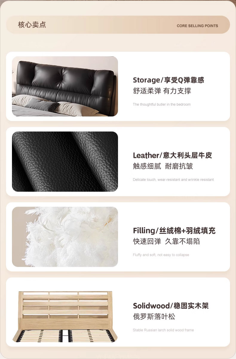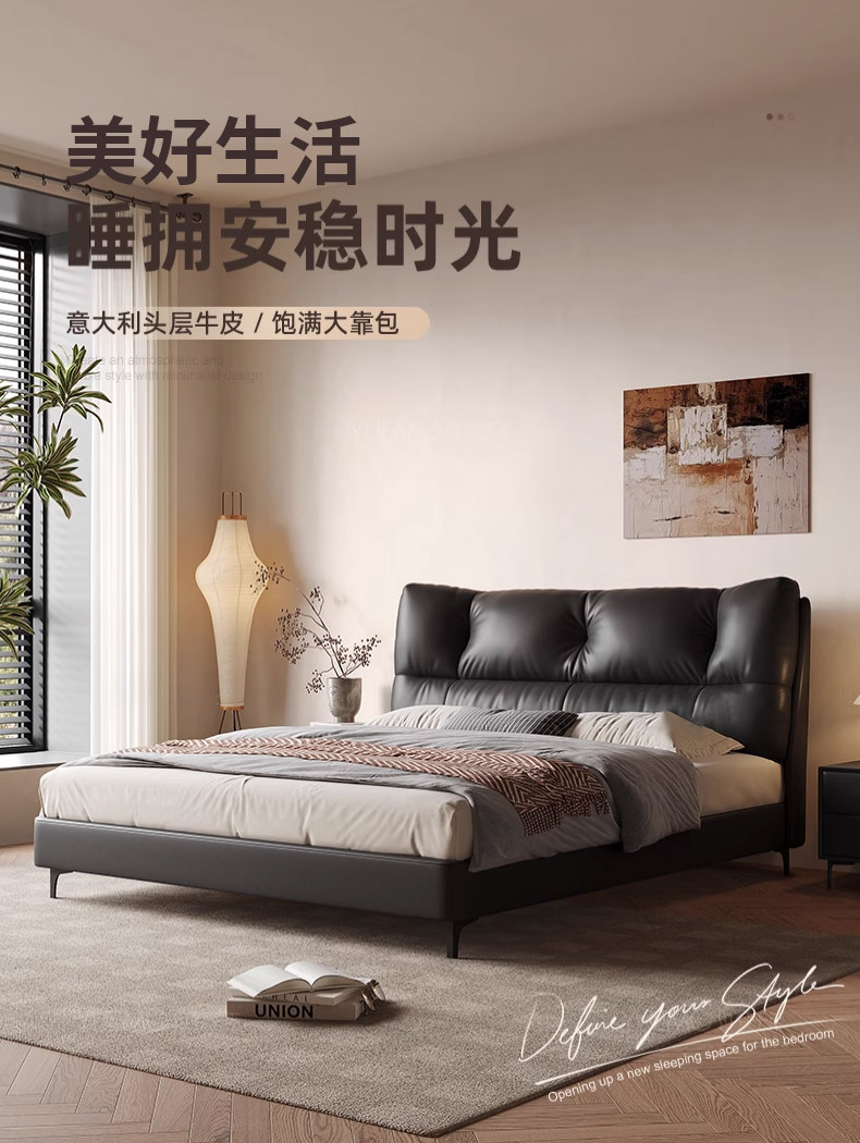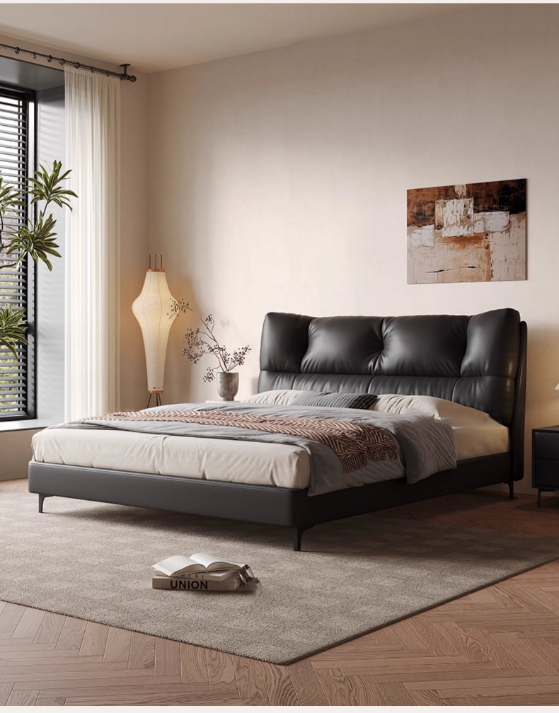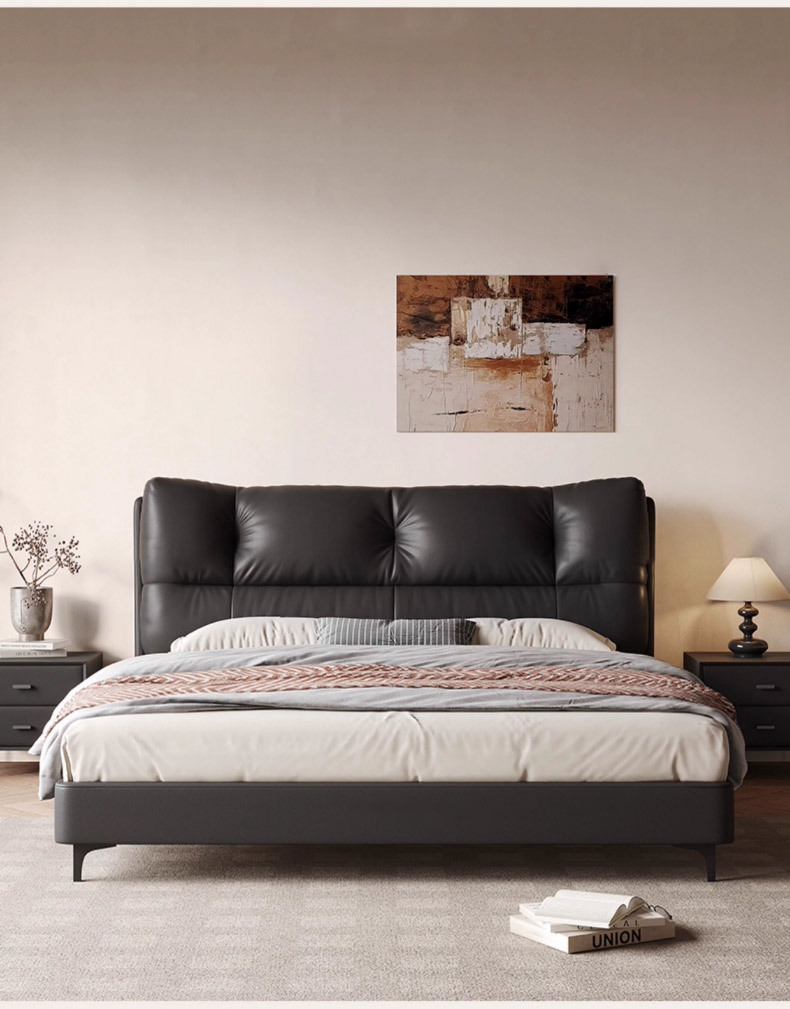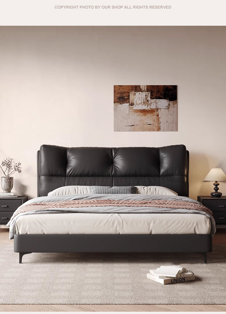 1층 천연가죽 침대, 마스터룸, 고급스럽고 우아한 클라우드 침대, 프렌치 레트로 스타일 침실 침대, 모던하고 심플한 더블 침대스토어 가기